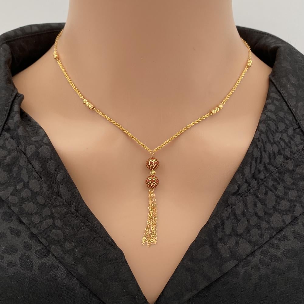 وصف المنتج: تتميز هذه السبحة الذهبية بتصميمها الراقي الذي يعكس جمال الذهب الأصيل. بوزنها الخفيف وتصميمها المميز، تعتبر مثالية للاستخدام اليومي والمناسبات الخاصة مثل حفلات الزواج، الأعياد، والاجتماعات الاجتماعية. هذه السبحة ستضفي لمسة من الفخامة على عنقك، لتكوني دائماً محط الأنظار بإطلالة لا تُنسى.