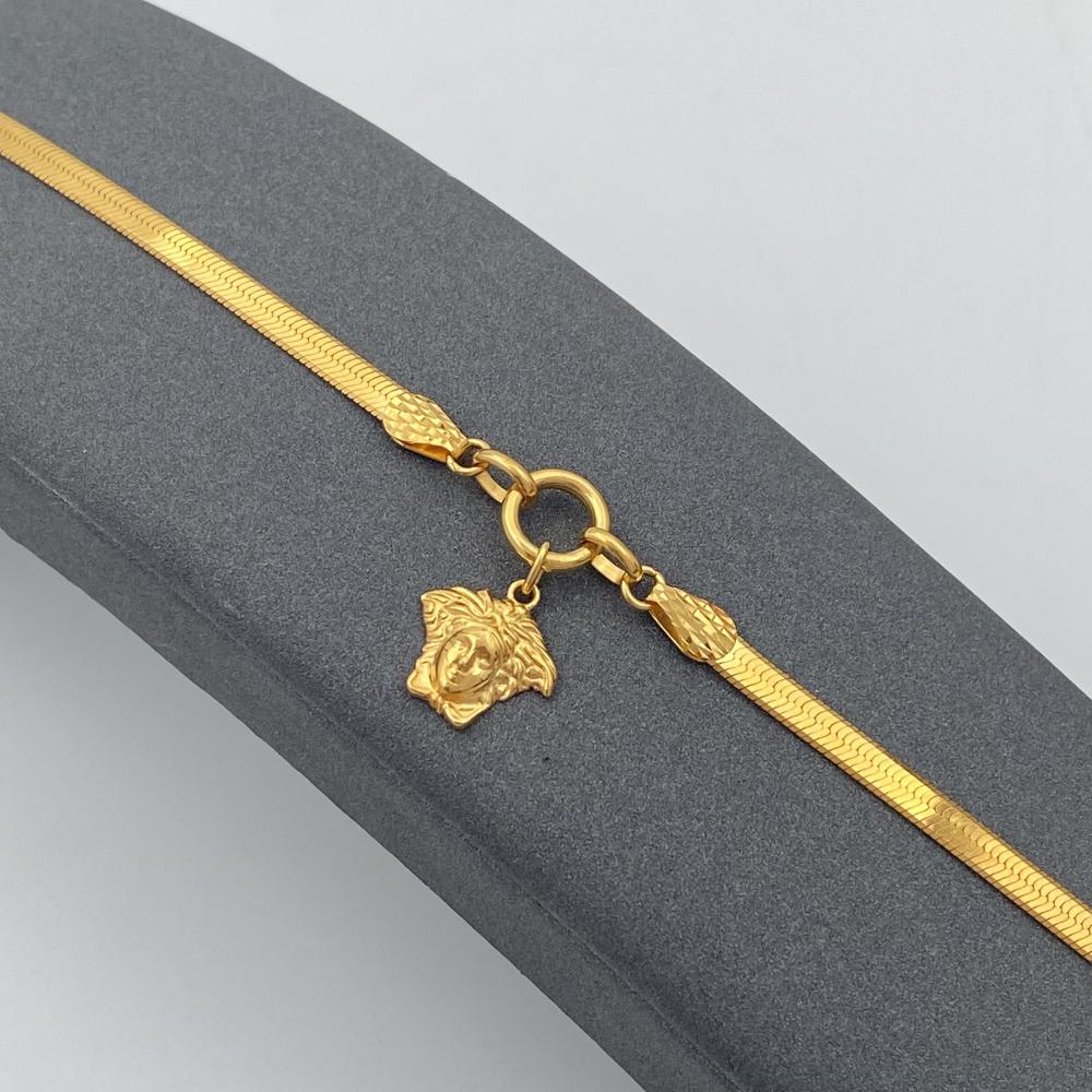 أبرزي قوتك وأناقتك مع اسواره فرزاتشي ذهب عيار 21 بوزن فاخر يبلغ 6.77 جرام، مزينة بتعليقة رأس الأسد التي ترمز للقوة والفخامة، بطول مثالي 20 سم وتصميم أنيق يجمع بين الجرأة والرقي، تمنحك هذه القطعة لمسة استثنائية تعكس شخصيتك المميزة.