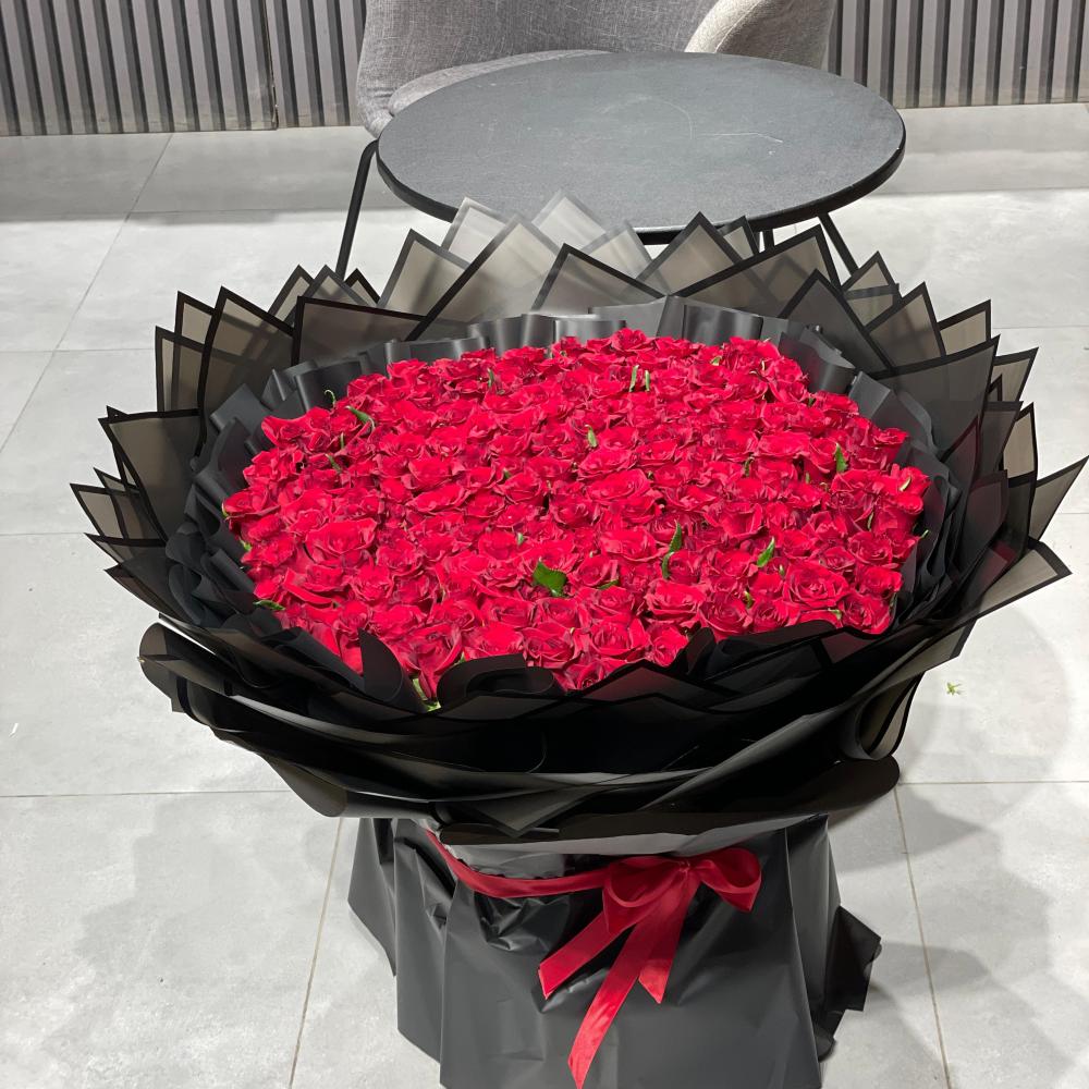باقة الورد الأحمر الطبيعي الكبيرة المكونة من 200 وردة حلوة هي التعبير الأمثل عن الحب العميق والشغف الكبير. إنها الهدية المثالية لجعل كل مناسبة خاصة ومميزة، سواء كنت تحتفل بمناسبة رومانسية أو ترغب في إبهار شخص مميز. اختر هذه الباقة الفاخرة لتضفي لمسة من الفخامة والرومانسية على كل لحظة وتجعلها تدوم في الذاكرة.