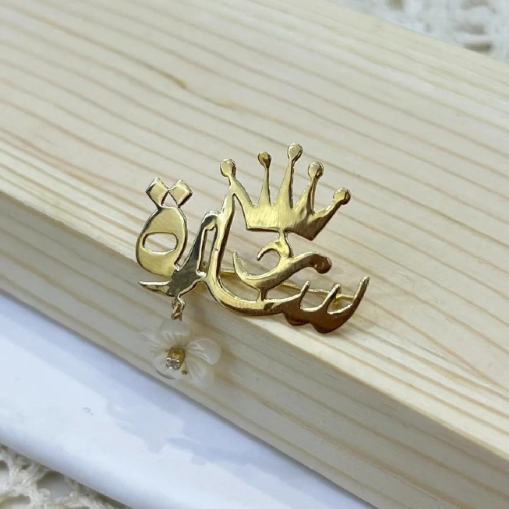 لا تفوّتي الفرصة! اقتني الآن بروش ذهب المميز بتصميم اسمك من ذهب من قمة زاوية الشفاء للذهب والمجوهرات مع تغليف أنيق وخدمة استبدال واسترجاع مضمونة. اطلبيه الآن وأضيفي لمسة ملكية لإطلالتك!