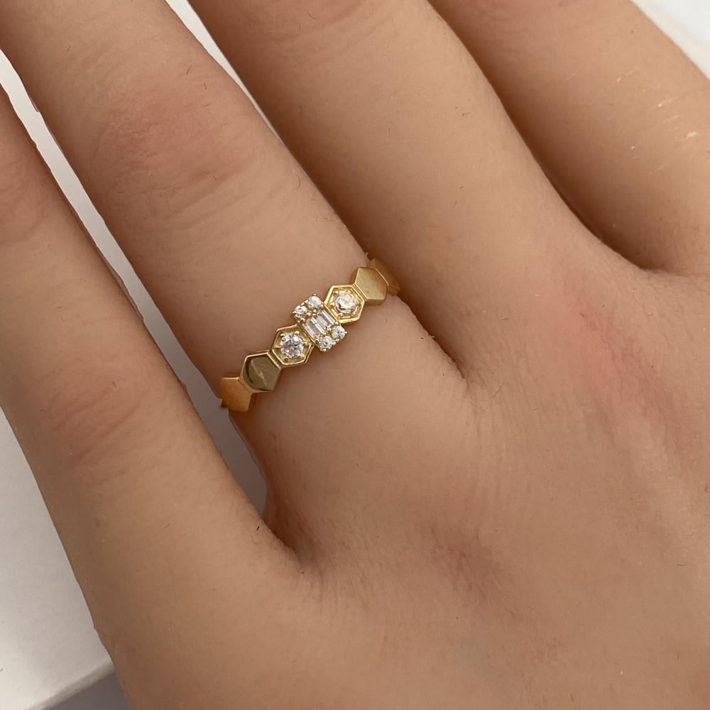 يتألف الذهب عيار 18 من 75% ذهب خالص، ممزوجًا بـ 25% من المعادن الأخرى مثل الفضة أو النحاس. هذا التوازن بين النقاء والمتانة يجعل هذا النوع من الذهب مثاليًا للمجوهرات التي تُرتدى بشكل يومي، بما في ذلك الخواتم. يتميز الذهب عيار 18 بلونه الدافئ اللامع وقدرته على تحمل الاستخدام اليومي دون فقدان بريقه، مما يجعله خيارًا شائعًا لعشاق المجوهرات.