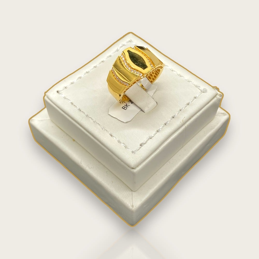 خاتم ذهب عيار 21 يتميز هذا الخاتم بتصميم عريض يُضيف لمسة من الفخامة والأناقة مرصعًا بالفصوص البيضاء ببراعة متناهية وبفضل وزنه الثقيل وتصميمه العريض، يعتبر هذا الخاتم إضافة مثالية لمجموعة المجوهرات الخاصة بك، سواء للمناسبات الرسمية أو اليومية