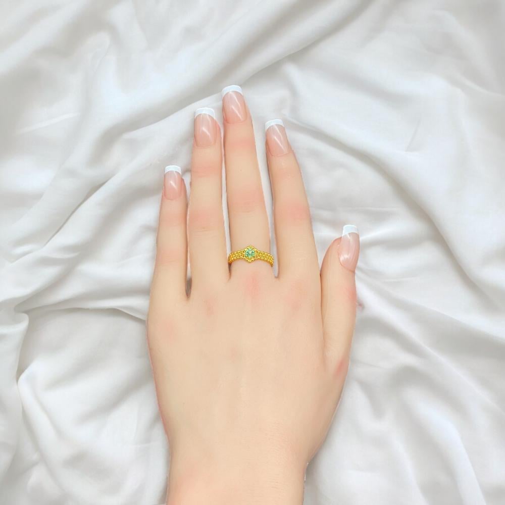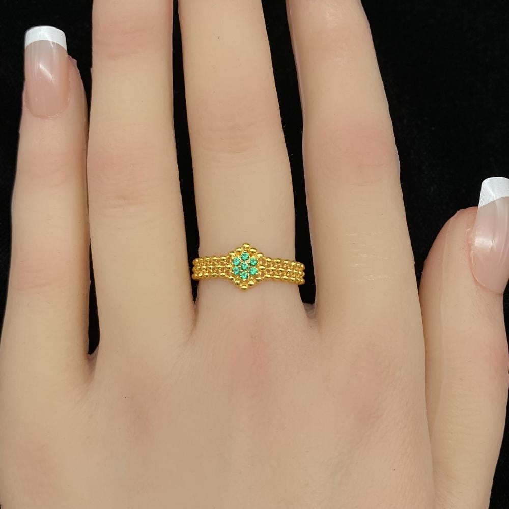خاتم ذهب عيار 21 صافي مزين بلون اخضر انيق بوزن 2,30 جرام