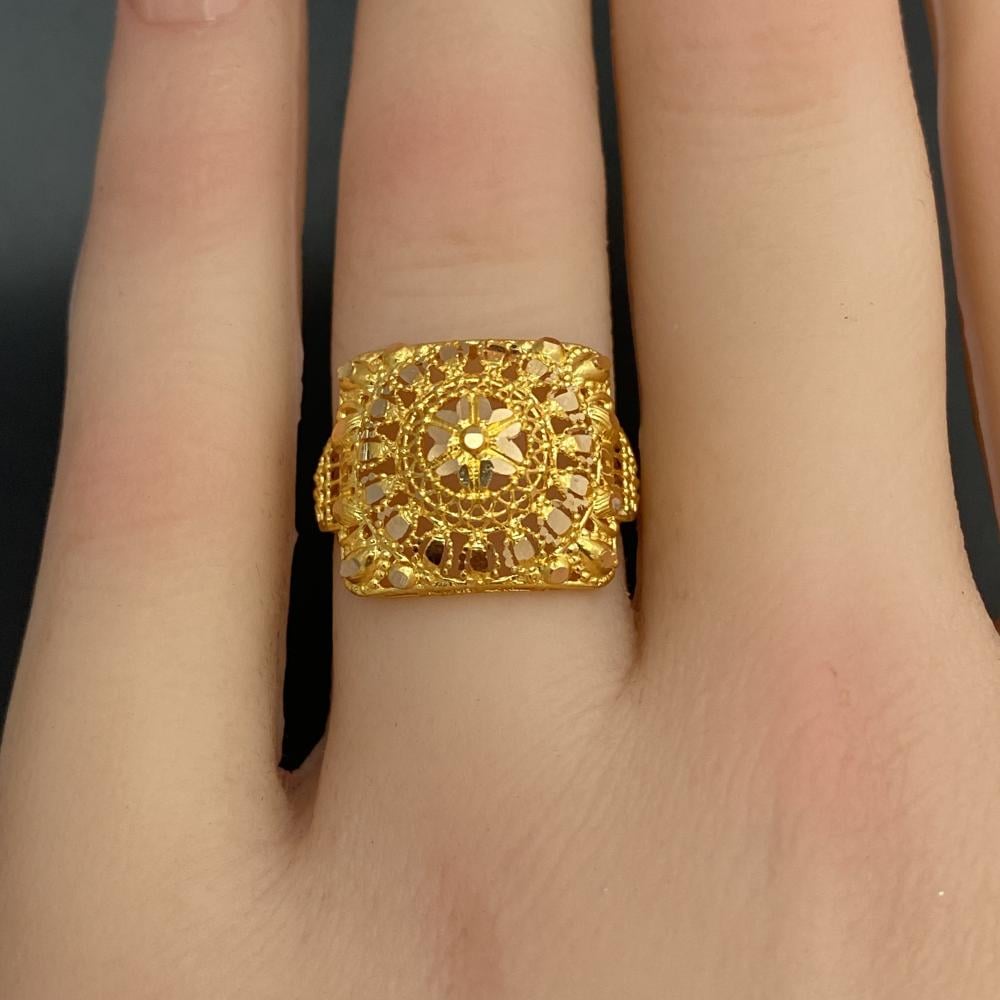 تميزي بإطلالة ملوكية مع هذا الخاتم الذهبي الفاخر عيار 21 بوزن 2.73 جرام، بتصميمه الملكي الأخاذ يجمع بين التفاصيل الراقية واللمسات الفخمة ليكون قطعة تجسد الفخامة والتميز، مثالي لمن تبحث عن إطلالة تعكس شخصيتها القوية وأناقتها الفريدة.