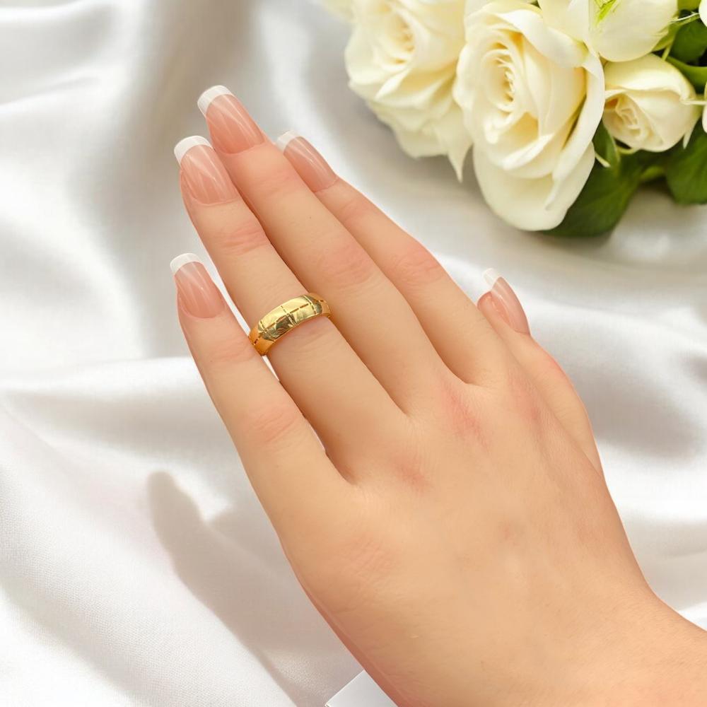 إن بساطة التصميم ونعومته تجعل هذه الدبلة خيارًا مثاليًا للأشخاص الذين يفضلون المجوهرات الهادئة والأنيقة التي تعكس ذوقهم دون الحاجة إلى تكلّف أو تفاصيل معقدة.