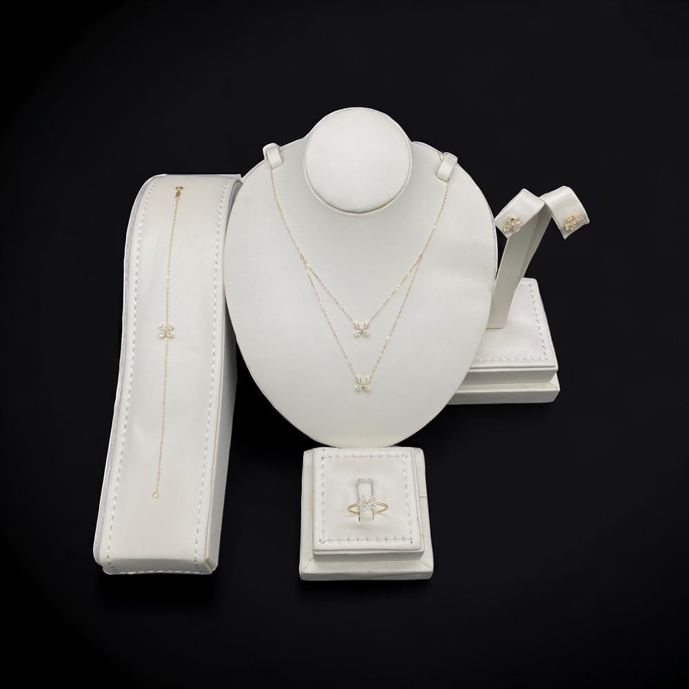 يأتي طقم الذهب عيار 18 بوزن 2.87 جرام بتصميمات متنوعة تلبي احتياجات جميع الأذواق. يمكنكِ العثور على طقم يتضمن قلادة وأساور أو حتى خواتم وأقراط، ويمكنكِ اختيار ما يناسبك من حيث الشكل والتصميم. كما أن هذه المجوهرات مصممة لتكمل كل إطلالة وتبرز جمالكِ بطريقة راقية وأنيقة.