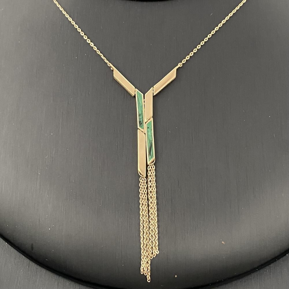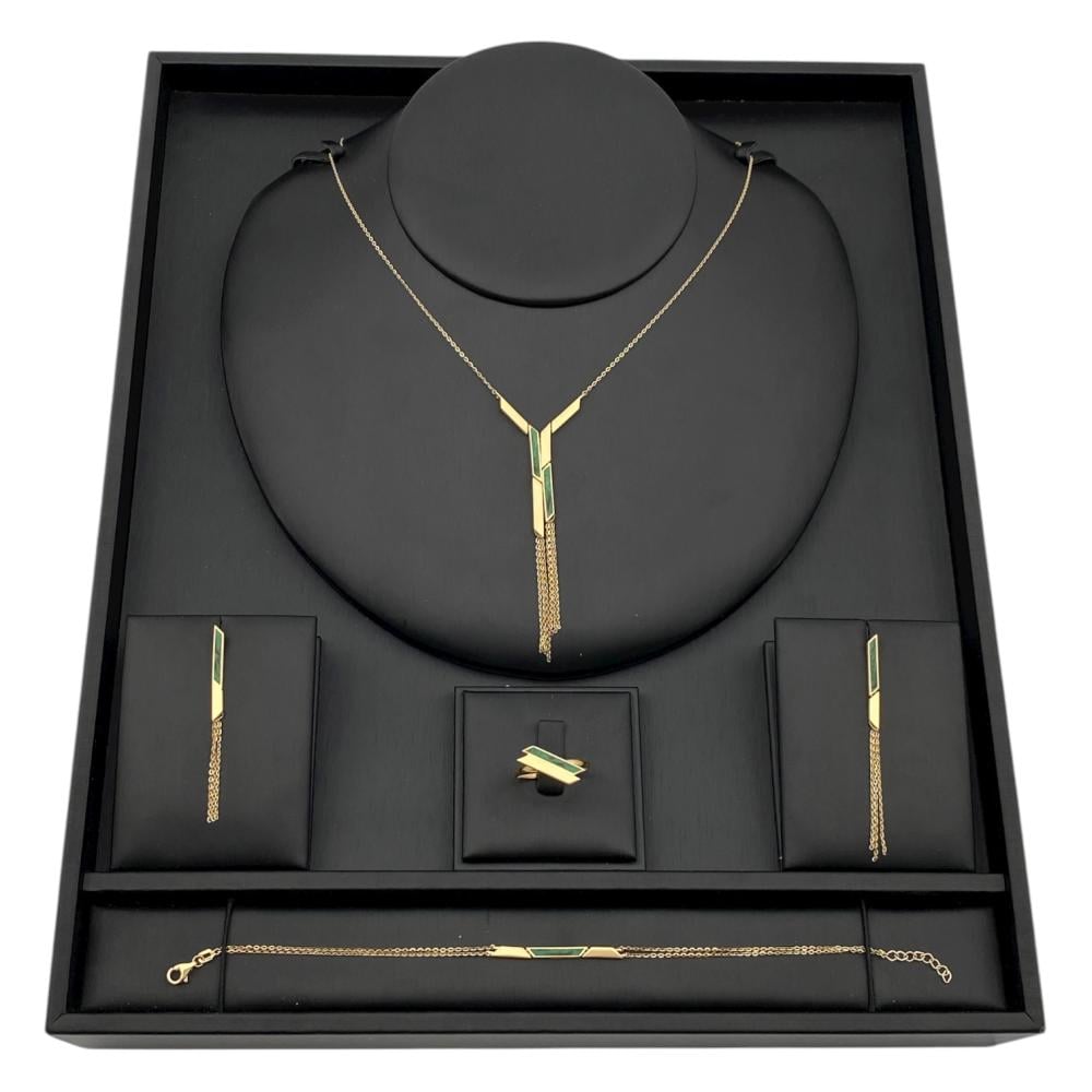 مميزات طقم ذهب كامل عيار 18 وزن 12.62 جرام مزين بقطع خضراء أنيقة