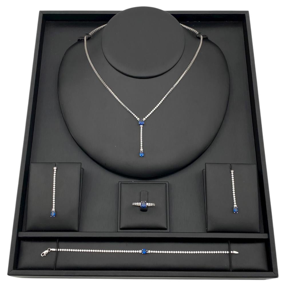 أبرزي إشراقتك وتألقك مع طقم ذهب أبيض عيار 18 وزن 14.63 جم مطعم بحجر أزرق رائع من متجر قمة زاوية الشفاء للذهب والمجوهرات، قطعة فاخرة تجمع بين الرقي والذوق الرفيع، تصميمها المترف يسرق الأنظار ويضفي لمسة من الفخامة الساحرة على كل إطلالة.