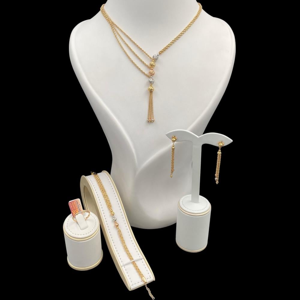 تعدد قطع الطقم، الذي قد يشمل قلادة وأقراط وأسورة وخاتم، يتيح تنسيقها بأسلوب يلائم مختلف الأوقات. سواء كنتِ تحضرين مناسبة رسمية أو تبحثين عن لمسة أنيقة في يوم عادي، فإن هذا الطقم يلبي كل احتياجاتك.