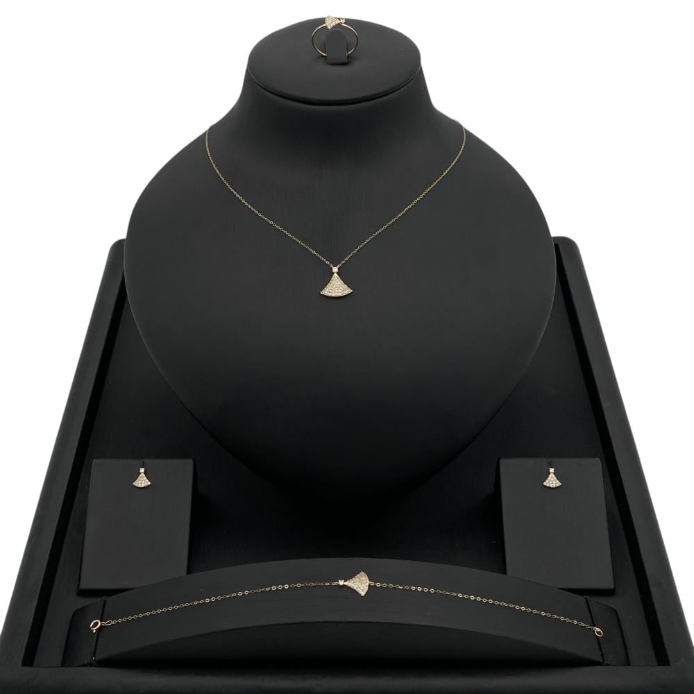 يتوفر طقم الذهب عيار 18 بوزن 2.17 جرام في مجموعة من التصاميم الرائعة التي تناسب جميع الأذواق. يمكن أن يتنوع الطقم بين قلادات، أساور، خواتم، وأقراط، وهو ما يجعله خيارًا رائعًا للعديد من المناسبات المختلفة. تصميمه البسيط والأنيق يتيح لك تنسيقه بسهولة مع الملابس اليومية أو ملابس السهرة. كما أن طقم الذهب هذا يعكس الذوق الرفيع ويضيف لمسة من الجمال إلى إطلالتك.