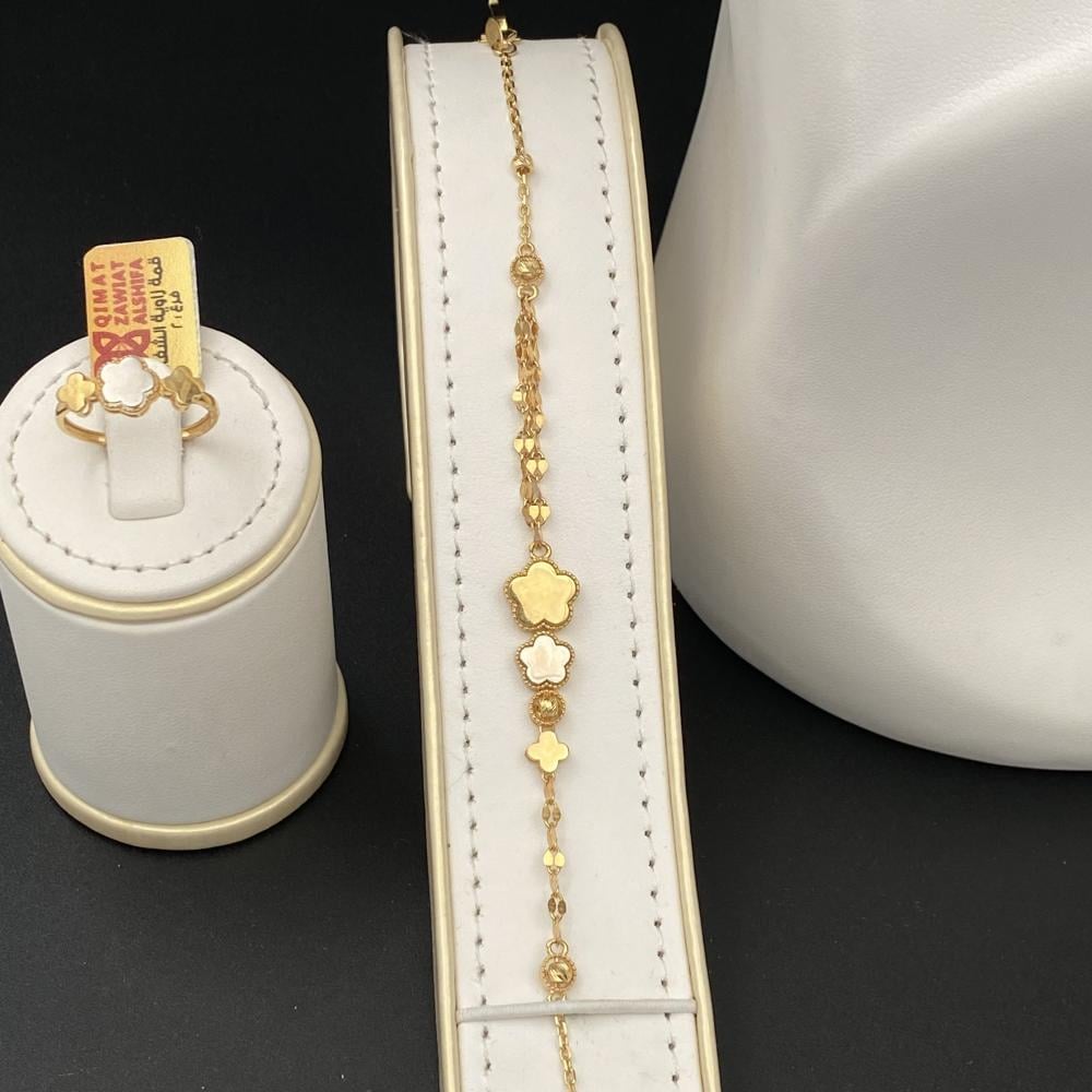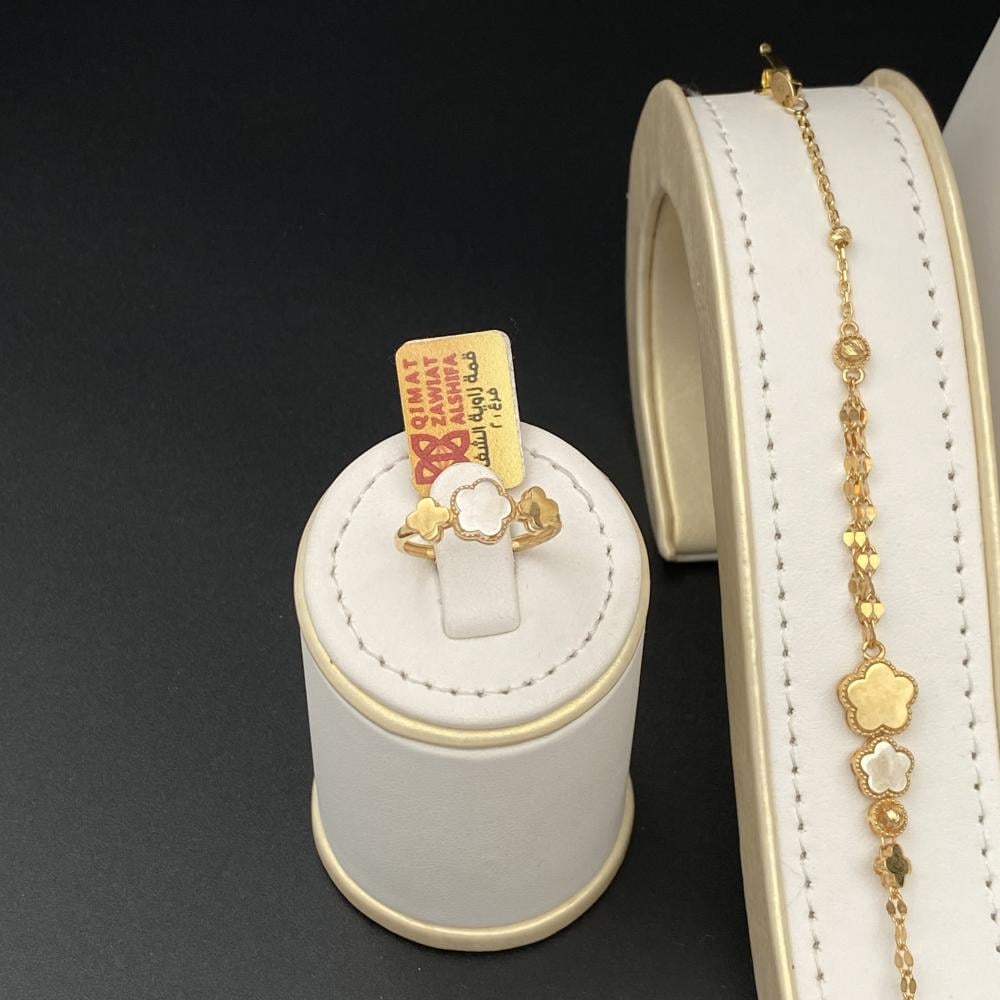 وزن الطقم 22.57 جرام يوفر توازنًا مثاليًا بين الحجم والراحة. فهو كافٍ لإبراز جمال الطقم دون أن يكون ثقيلًا أو مزعجًا عند الارتداء.