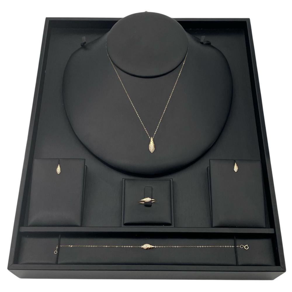 تألقي بإطلالة تخطف الأنظار مع طقم ذهب عيار 18 بوزن 2.76 جرام بتصميم شكل دمعات مرصع بفصوص بيضاء من قمة زاوية الشفاء للذهب والمجوهرات. تصميم يجمع بين النعومة والرقي، يعكس أنوثة لامعة تبرز جمالك الطبيعي في كل مناسبة. الفصوص البيضاء تضيف لمسة من البريق الساحر تجعل هذا الطقم قطعة استثنائية تكمّل أناقتك بأسلوب راقٍ ومتألق.