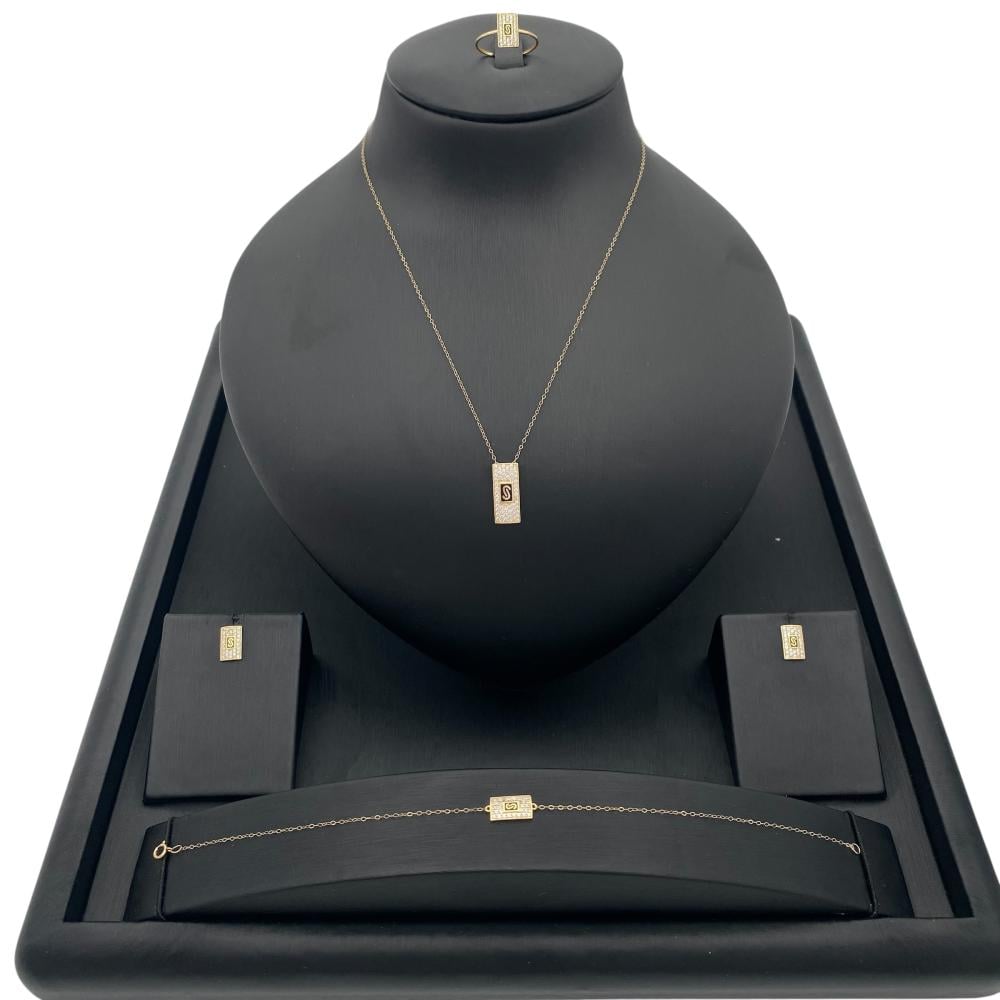 ارتقي بإطلالتك مع طقم ذهب عيار 18 وزن 3.25 جم من قمة زاوية الشفاء للذهب والمجوهرات. المصمّم بتعليقة على شكل مستطيل أنيق يمنحك لمسة من الفخامة الهادئة. يجمع هذا الطقم بين الرقة والبساطة العصرية ليكون قطعة مثالية تُبرز أنوثتك وتضيف تألقًا راقيًا إلى مظهرك اليومي والمناسبات الخاصة.