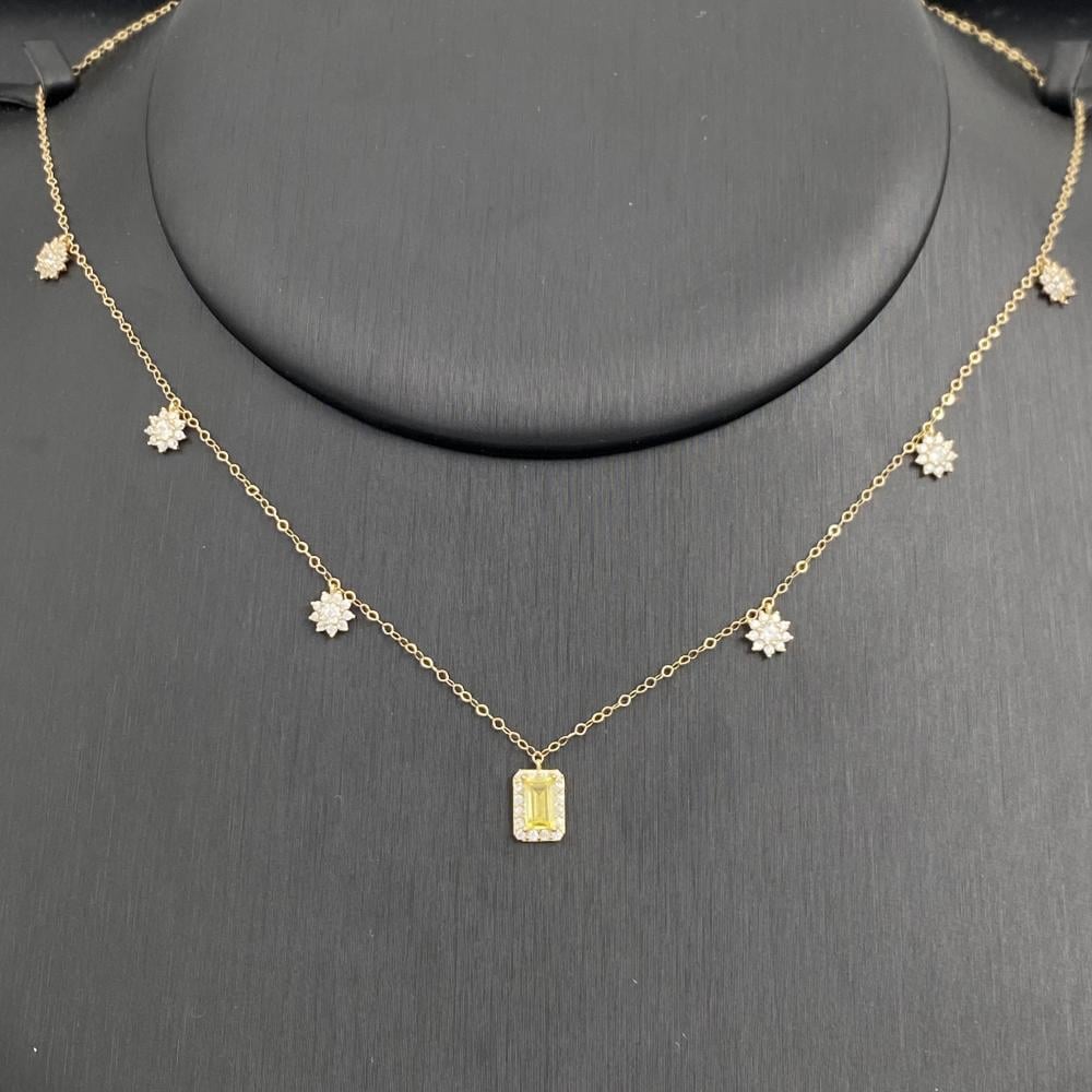 مواصفات طقم ذهب عيار 18 وزن 3.68 جم تصميم زهرة بحجر كريم فخم