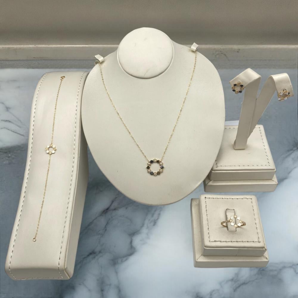 لإبراز جمال الطقم في المناسبات الخاصة، يمكنك دمجه مع مجوهرات أخرى من عيار 18 للحصول على مظهر متكامل وساحر.