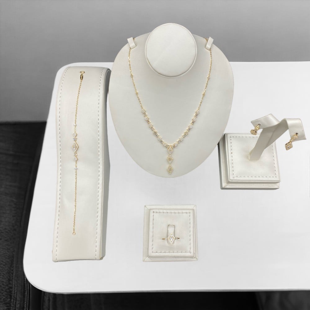 طقم ذهب عيار 18 الوزن 9.64 جرام الرقي والاناقة عنوان ، صمم خصيصًا لكل بحاثة عن الفخامة لكى سيدتى