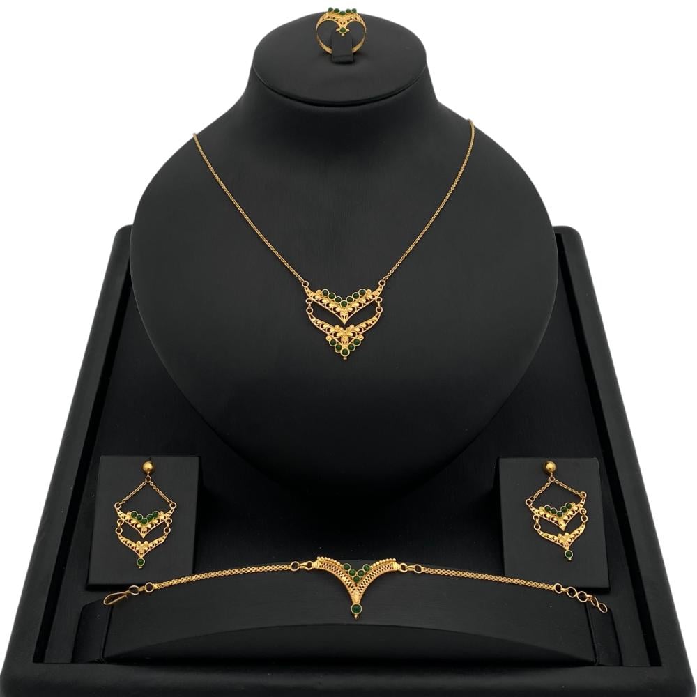 - المتانة: بفضل احتوائه على نسبة عالية من الذهب النقي، يعد طقم الذهب عيار 21 متينًا ومقاومًا للتآكل، مما يضمن استدامته على مر الزمن.