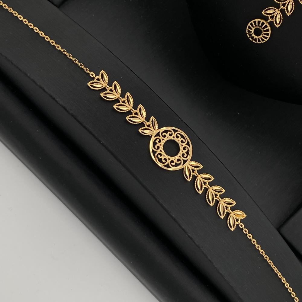 هذا الطقم الرائع من الذهب عيار 21 هو الاختيار المثالي لامرأة تحب الأناقة والتميز. يتميز هذا الطقم بتصميماته الفريدة والراقية التي تجعله يبدو أنيقًا ومميزًا في نفس الوقت. يشمل الطقم قطعًا مميزة بتفاصيل دقيقة تعكس ذوقك الرفيع وتعبر عن سحرك الخاص. سيضيف هذا الطقم لمسة من الجمال والأناقة إلى إطلالتك، مما يجعلك تتألقي بأناقة لا مثيل لها. احصلي على هذا الطقم الراقي وكوني ملكة الأناقة والجمال في كل مناسبة.