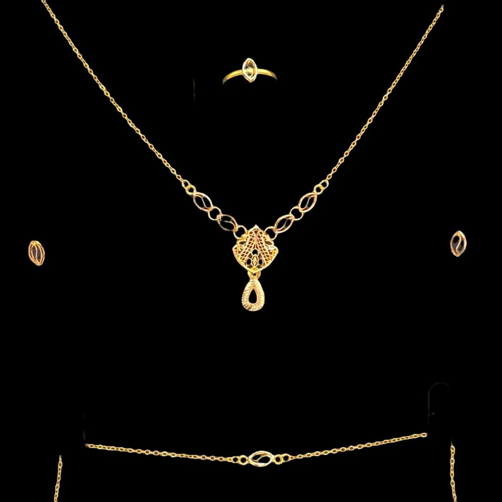 - لمسة من الفخامة بدون مبالغة: يتيح طقم الذهب عيار 21 بوزن 4.5 جرام للمرأة الحصول على إطلالة أنيقة وفاخرة، دون الحاجة إلى المجوهرات الثقيلة أو المبالغ فيها. يمكن ارتداؤه مع أي ملابس سواء كانت كاجوال أو رسمية، مما يجعله خيارًا مثاليًا للسيدات اللواتي يفضلن الأناقة الهادئة.
