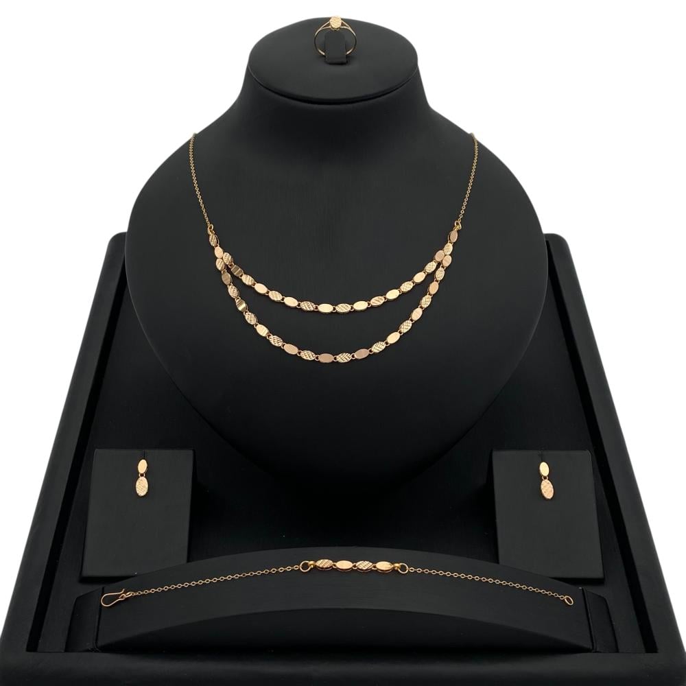 مواصفات طقم ذهب عيار ٢١ ناعم وزن 9.77 جرام بيضاوي لإطلالة مميزة