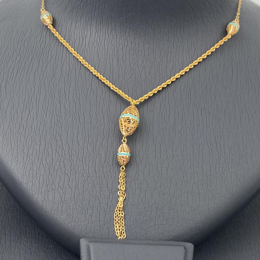 استقبلي الفخامة والرقي مع قطعة مجوهرات لا مثيل لها من قمة زاوية الشفاء للذهب والمجوهرات، حيث تلتقي براعة التصميم بجمال الذهب الأصيل. نقدم لكِ اليوم طقم ذهب سلسال سبحه مبروم يجمع بين اللمسة التراثية والتصميم العصري، مزينًا بلمسات فيروزية ساحرة تضفي عليه رونقًا خاصًا وجاذبية فريدة. هذا الطقم مصمم ليناسب ذوقكِ الرفيع ويمنحكِ إطلالة متألقة تليق بكِ في كل مناسبة.
