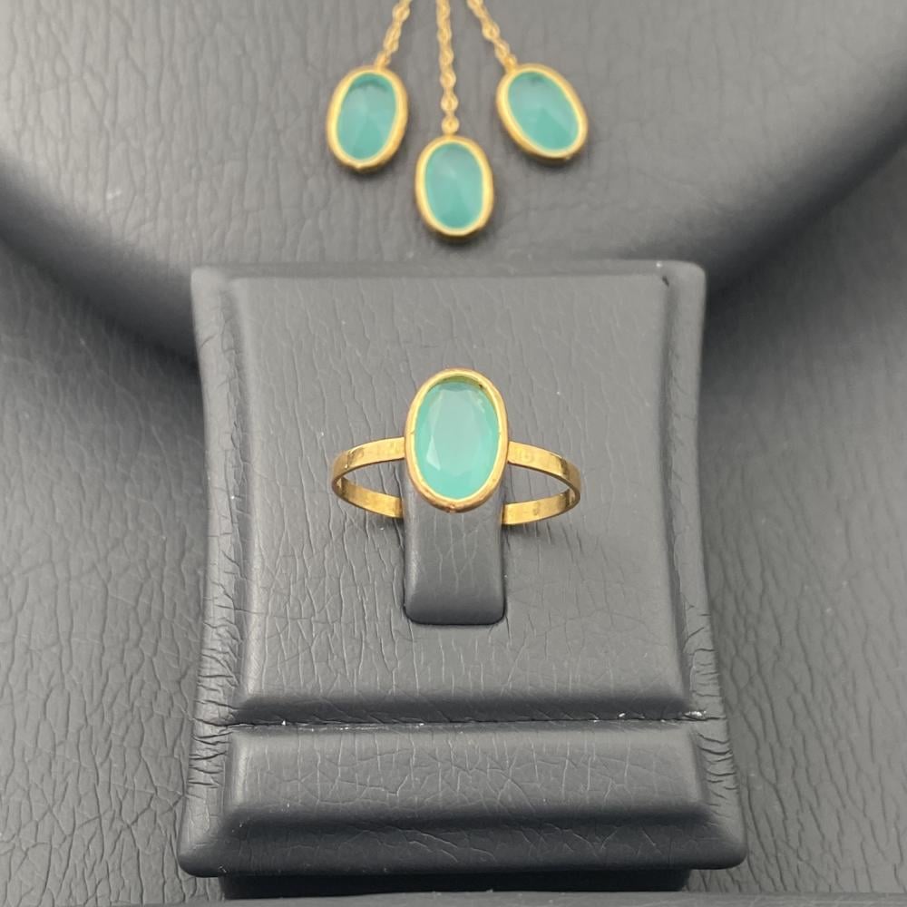 مواصفات طقم ذهب عيار 21 مزين بحجر أخضر أنيق فاخر