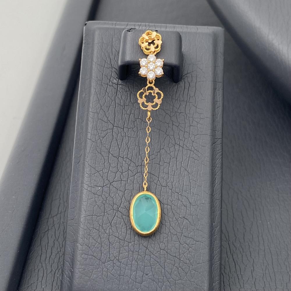 - اللون: ذهب اصفر مزين بحجر أخضر