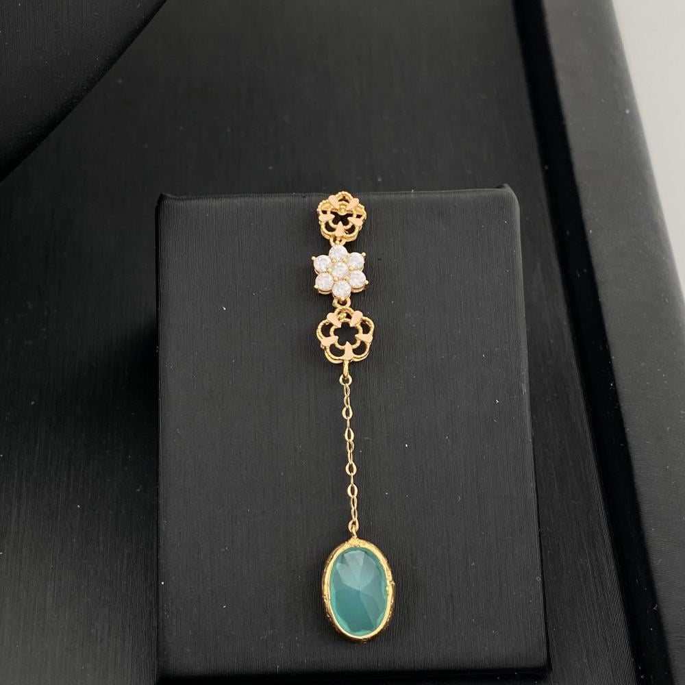 • اللون: ذهب اصفر مزين بحجر أخضر