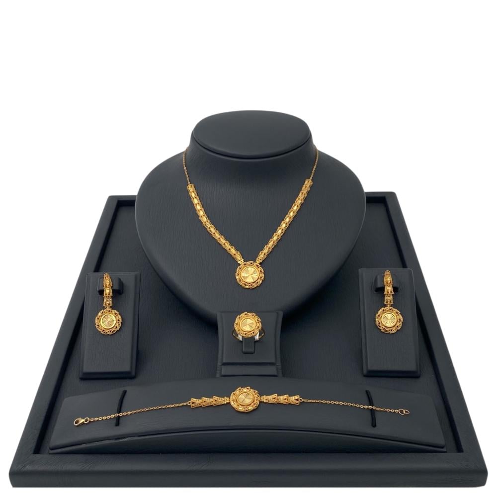 مواصفات طقم ذهب عيار 21 وزن 30.48 جرام كامل بحلية دائرية شُغلت بعناية فائقة