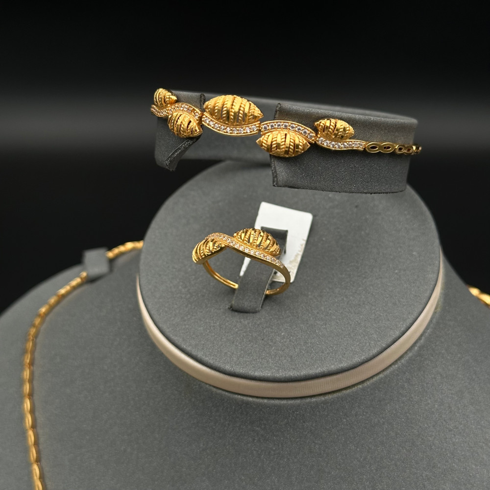 مهما كانت مناسبتكم، فإن طقم الذهب هذا سيضفي لمسة رائعة على إطلالتكم. سواء كنتم ترغبون في إهدائه لشخص عزيز أو اقتنائه لأنفسكم، فإن هذا الطقم سيكون هدية مثالية تشعر الحامل بهبة الذهب الفاخر.