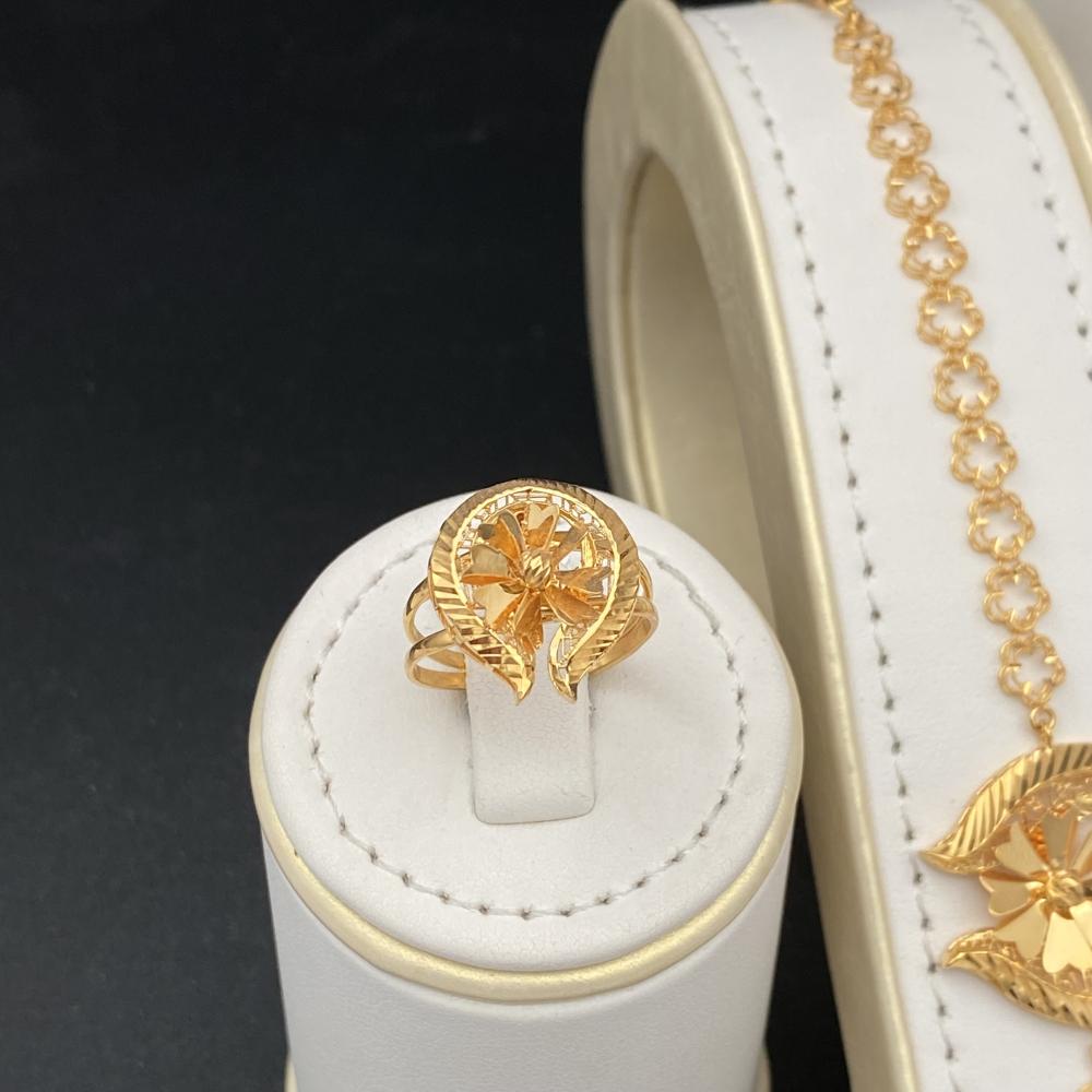 استعدي للتألق والجمال مع هذا الطقم الفاخر المكوّن من عقد رائع، خاتم أنيق، اسورة ساحرة، وحلق مذهل. يجمع هذا الطقم الأنيق بين لمسات الذهب الخالص وتصاميمه الدقيقة التي تضفي جاذبية لا مثيل لها على من ترتديه.