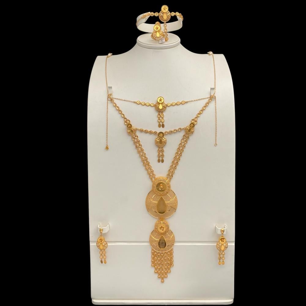 امنحي نفسك لمسة من التميز مع طقم الذهب الملكي من متجر قمة زاوية الشفاء، المتوفر ضمن تشكيلة الأطقم الذهبية الفاخرة.تمتعي بتجربة تسوق راقية مع شحن سريع وخدمة استبدال مريحة وفق سياسة المتجر.