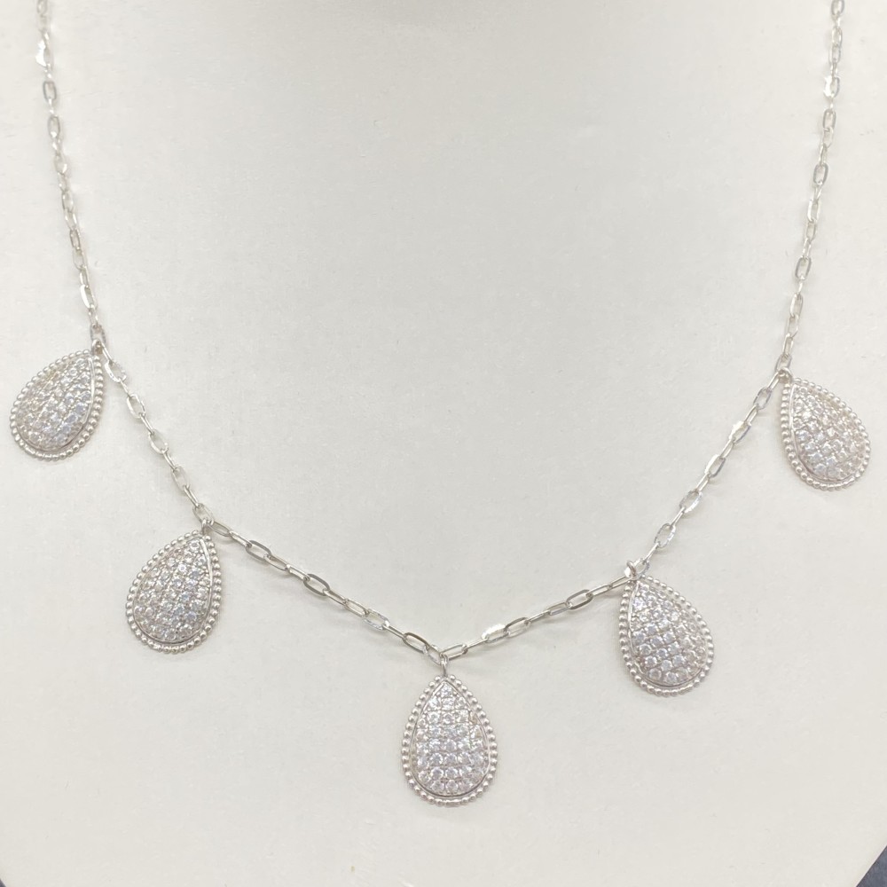 عقد تشوكر ذهب ابيض 18 قيراط بتصميم الماسى عالمى يضيف لمسة من الاناقة الوزن 5.25 جرام اجعلي هذا العقد جزءًا من إطلالتك اليومية واستمتعي بالإطلالة الأنيقة والمتألقة التي سيضفيها عليك.