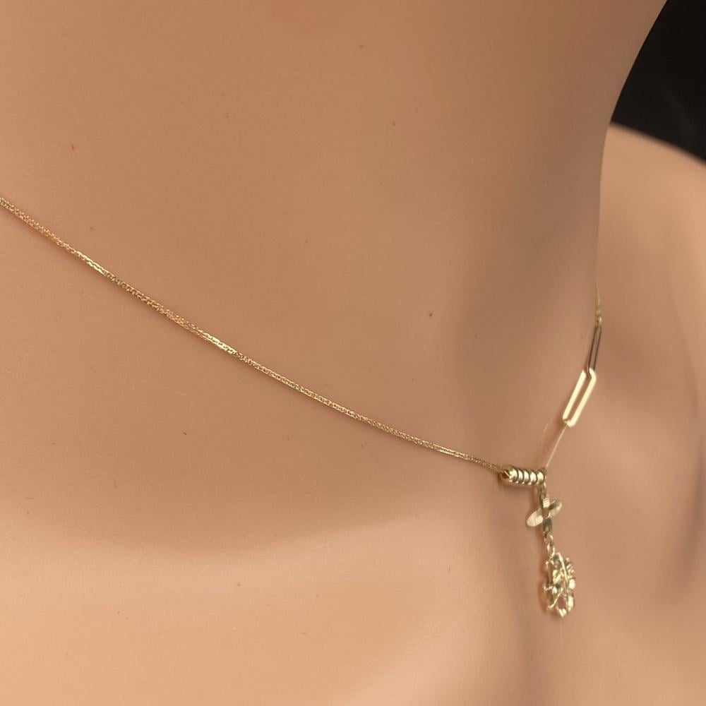 عقد ذهب عيار 18 بتصميم ناعم وجميل بوزن 0.99 جرام. هذا العقد يتميز بتصميمه الفاخر والأنيق، ويضيف لمسة من الجمال والأناقة إلى إطلالتك. إنه قطعة راقية تتميز بجودة عالية وتصميم عصري يمكنك الحصول عليها اليوم لتبرزي أناقتك في كل مناسبة.