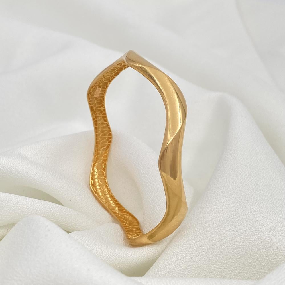 تألقي بلمسة من الفخامة العصرية مع هذه الغويشة الذهبية السادة بتصميمها المموج الأنيق، والتي تعد من الأكثر مبيعًا في متجر قمة زاوية الشفاء. بوزنها المتميز .9.70 جرام ومن الذهب الأصلي عيار 21، يبرز تصميمها الانسيابي الأنوثة والجاذبية في كل حركة، مما يجعلها قطعة مثالية لإطلالة لا تُنسى.