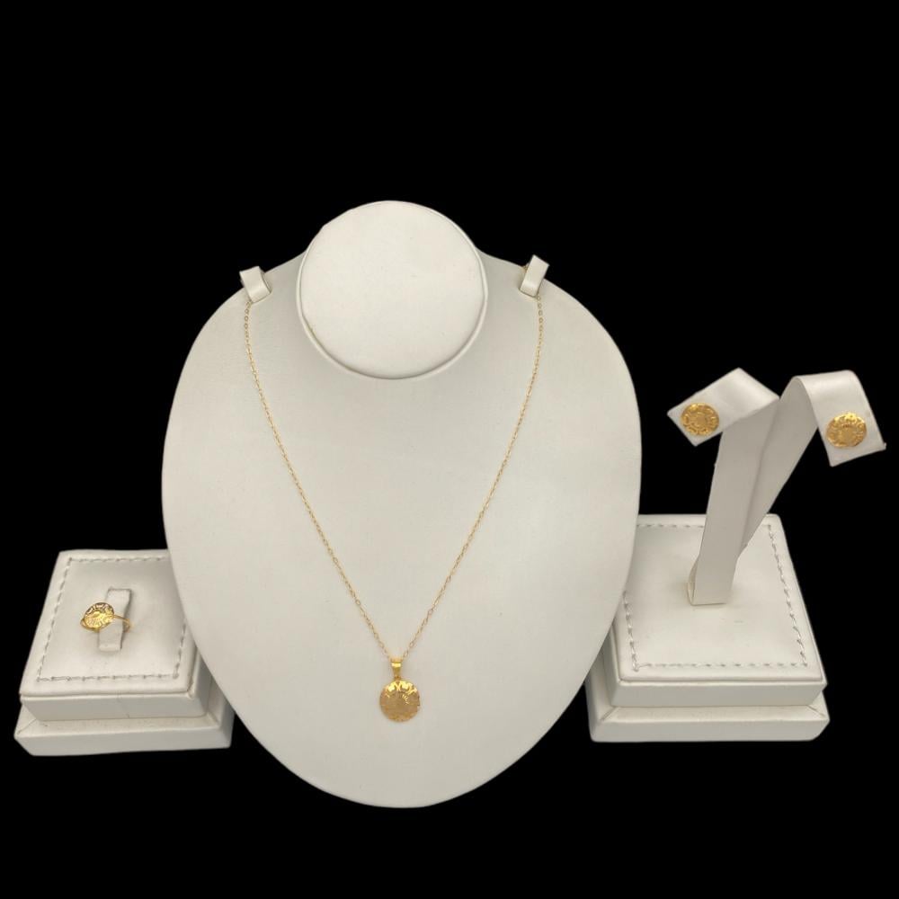 نصف طقم ذهب أطفال بلمسات أنيقة عيار 21 الوزن 2.63 جرام, يتضمن قطع مميزة وفاخرة تتميز بتصميم راقي وأنيق. يتميز هذا الطقم بجودة عالية وصناعة دقيقة تجعله مثالي لطفلتك. احرصي على إضافة هذه القطع الراقية إلى مجموعة مجوهرات طفلتك اليوم لتضيف لمسة من الأناقة والجمال إلى إطلالتها.