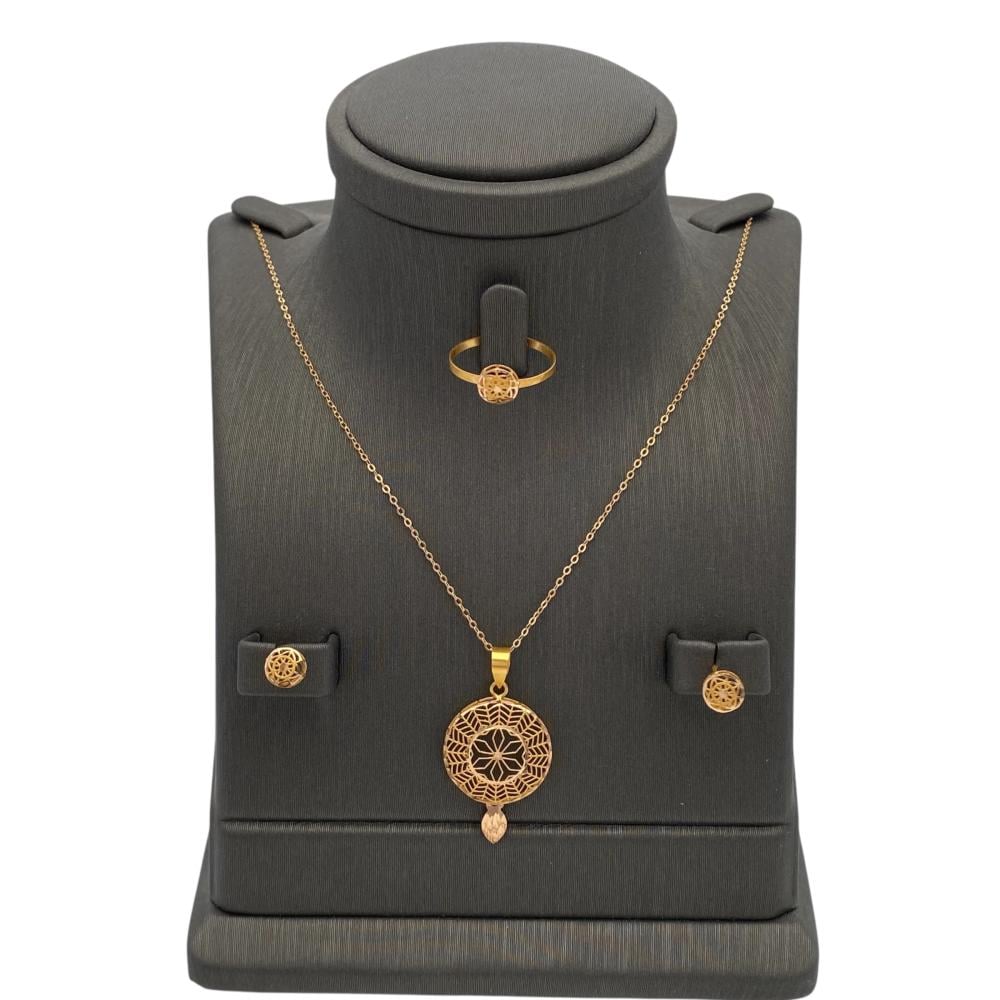 نصف طقم ذهب عيار 21 الوزن 3.65 جرام يضفي لمسة راقية وأنيقة إلى إطلالتك. هذا الطقم الفاخر يشمل قطعاً مميزة تزيد من جمالك وجاذبيتك.