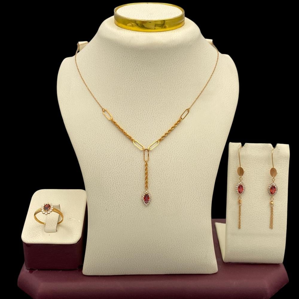 نصف طقم الذهب عيار 21 يشمل قطع أنيقة مرصعة بالمجوهرات تضيف لمعة من السحر والجاذبية إلى إطلالتك. يتميز هذا الطقم بوزنه الخفيف البالغ 5.01 جرام،