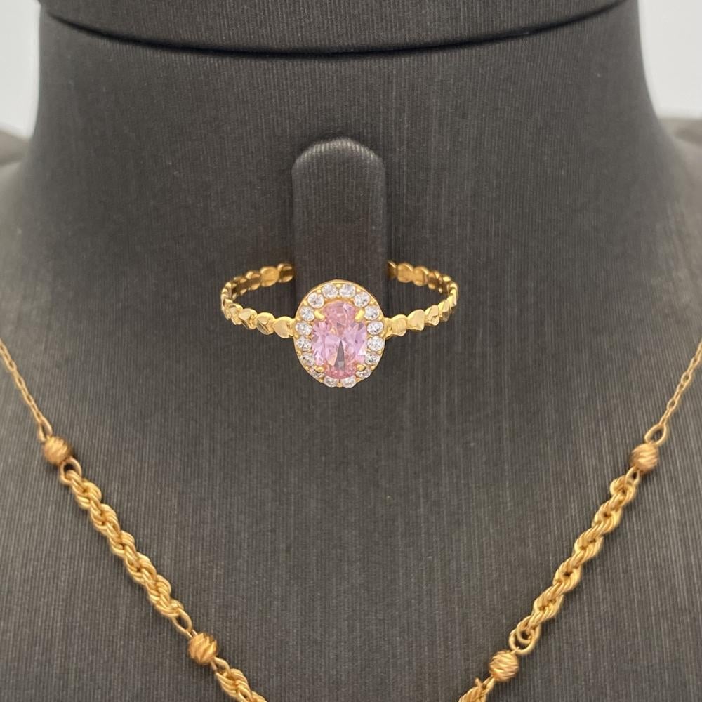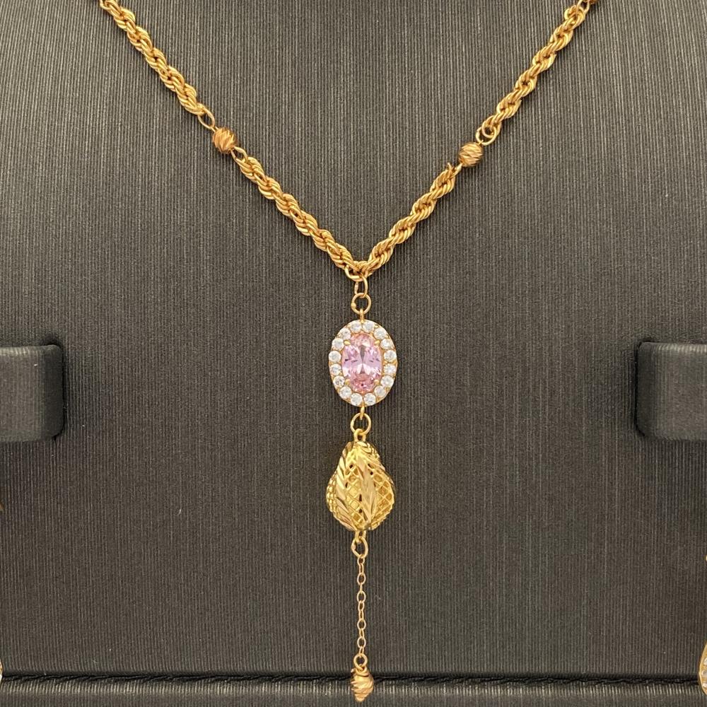 ارتدي نصف طقم ذهب عيار 21 الراقي والمميز وزنه 5.46 جرام، واضيفي لمسة من الأناقة والفخامة إلى إطلالتك. امتلكي هذه القطع الفاخرة من المجوهرات الراقية واستمتعي بلمعانها الجذاب وجمالها الفريد. اجذبي الأنظار وتألقي بأناقة لا تضاهى مع هذا الطقم الراقي.