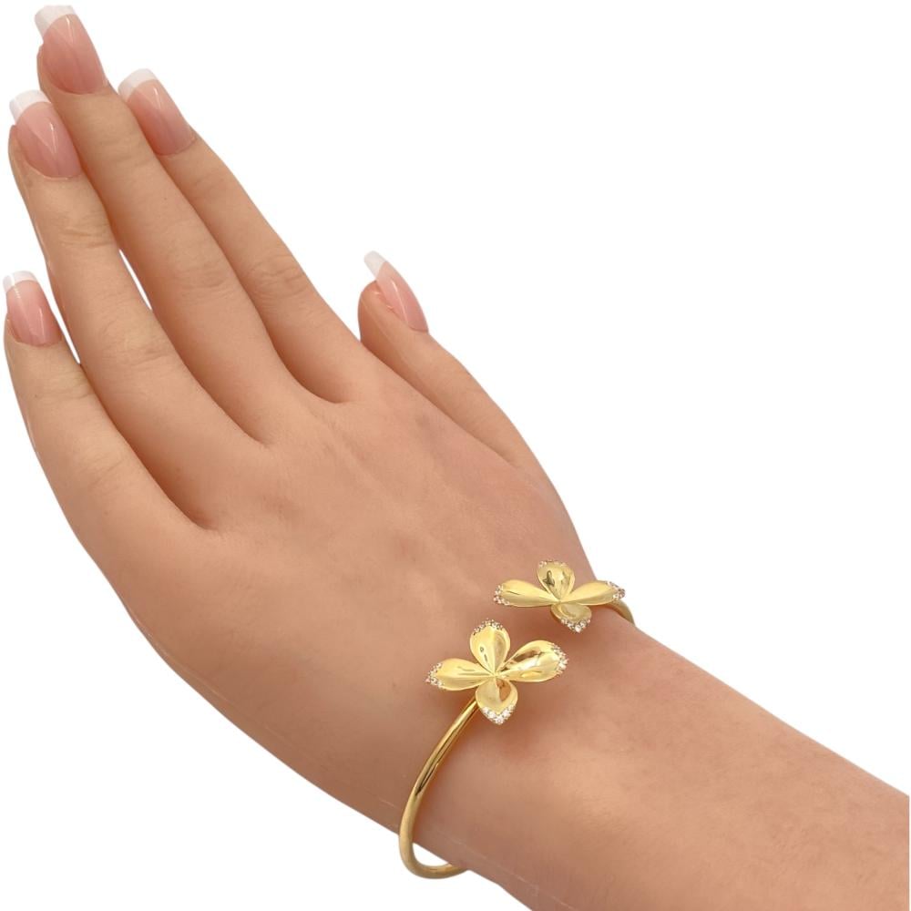 دلّلي معصمكِ بأجمل معاني الأنوثة والفخامة مع أساور عيار 18 فريدة من قمة زاوية الشفاء للذهب والمجوهرات. مصاغة بدقة من ذهب أصفر عيار 18 وبوزن 8 جرام، تأتيكِ هذه القطعة بتصميم مفتوح يجمع بين العصرية والنعومة، مزينة بوردة أنثوية أخّاذة تتوسطها فصوص براقة تمنح الأسوارة لمسة من السحر المتجدد. إنها ليست مجرد قطعة مجوهرات، بل تعبير أنيق عن الذوق الرفيع والحضور المميز.