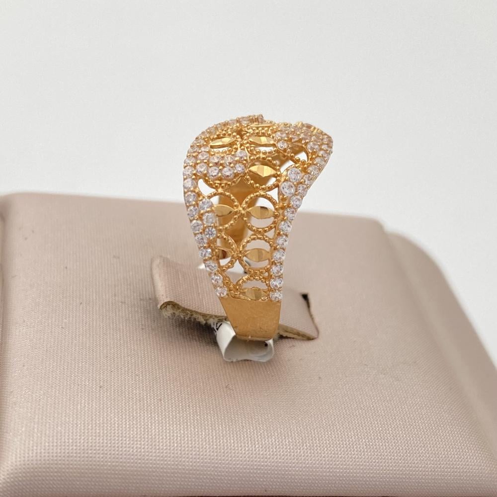 عيشي تألقك مع خاتم ذهب نسائي بتصميم مودرن عريض يفيض بالفخامة. مصاغ من ذهب أصفر عيار 21 بوزن 2.19 جرام، يزدان بفصوص لامعة تضيف بريقًا يخطف الأنظار. تصميمه العصري يمنحك حضورًا لافتًا، ليكون الخيار الأمثل لإكمال إطلالتك في كل مناسبة.