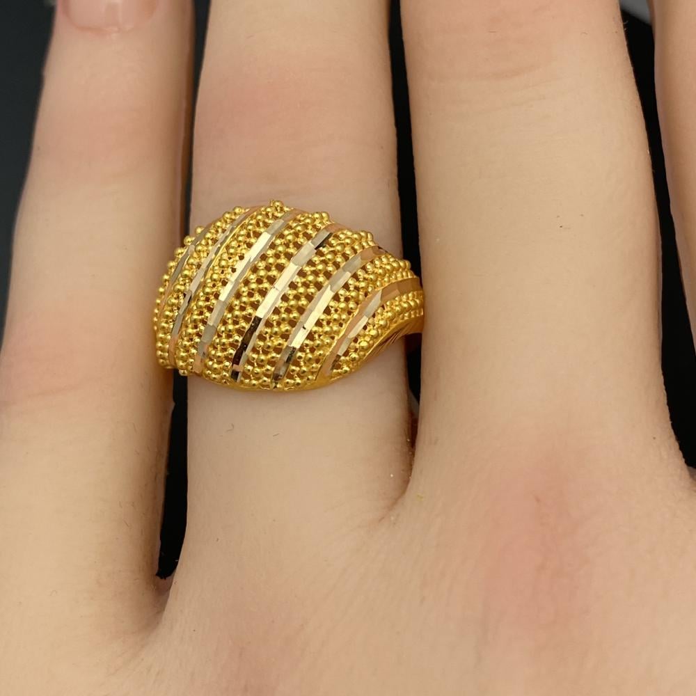 A large 21 karat gold ring weighing 2.97 grams. It gives you a touch of luxury and charm in every look with its elegant design and sophisticated shine. It comes with fine details that highlight the beauty of your hand and give it a special charm. Ideal for anyone who loves large pieces that reflect their strong personality and add a touch of elegance and luxury to their special occasions or daily look.