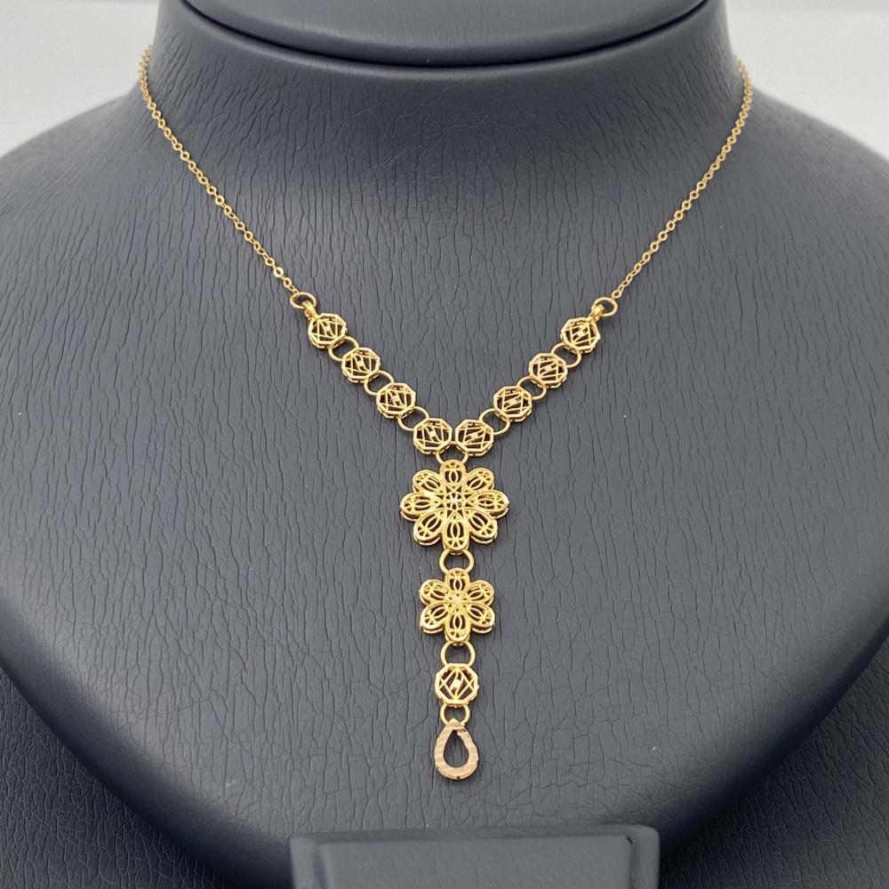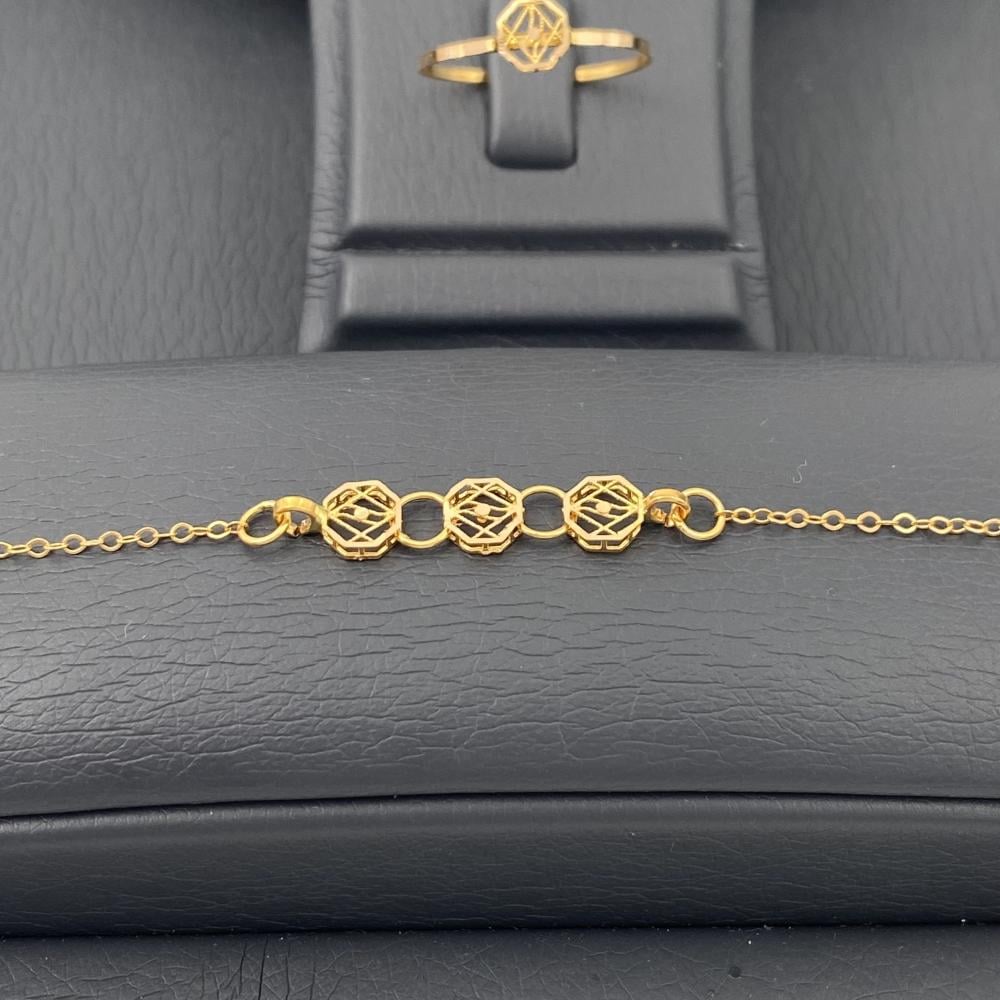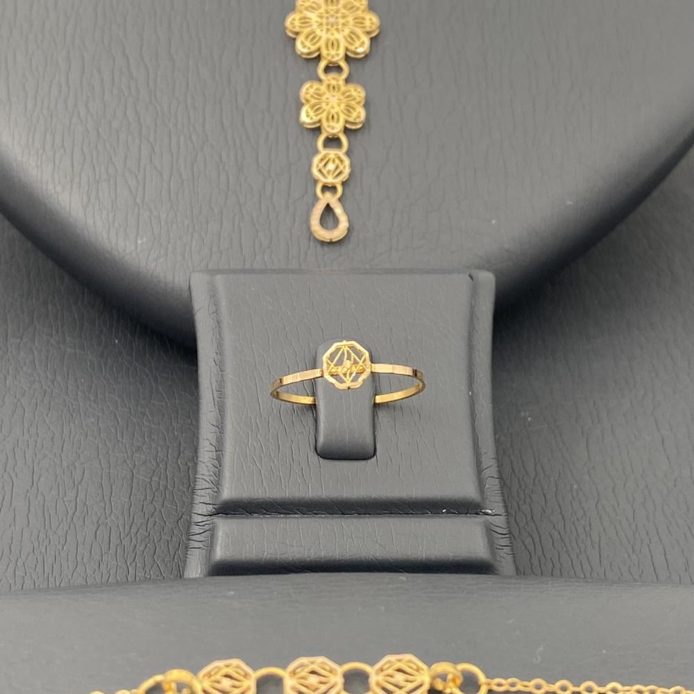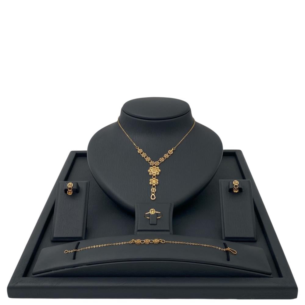Keep a touch of elegance and distinction with this luxurious 21k gold set weighing 7.44 grams. These exquisite pieces feature imaginative designs and beautiful details that highlight your beauty and elegance as a stylish lady. Make this elegant set a part of your daily look and shine with unparalleled elegance!