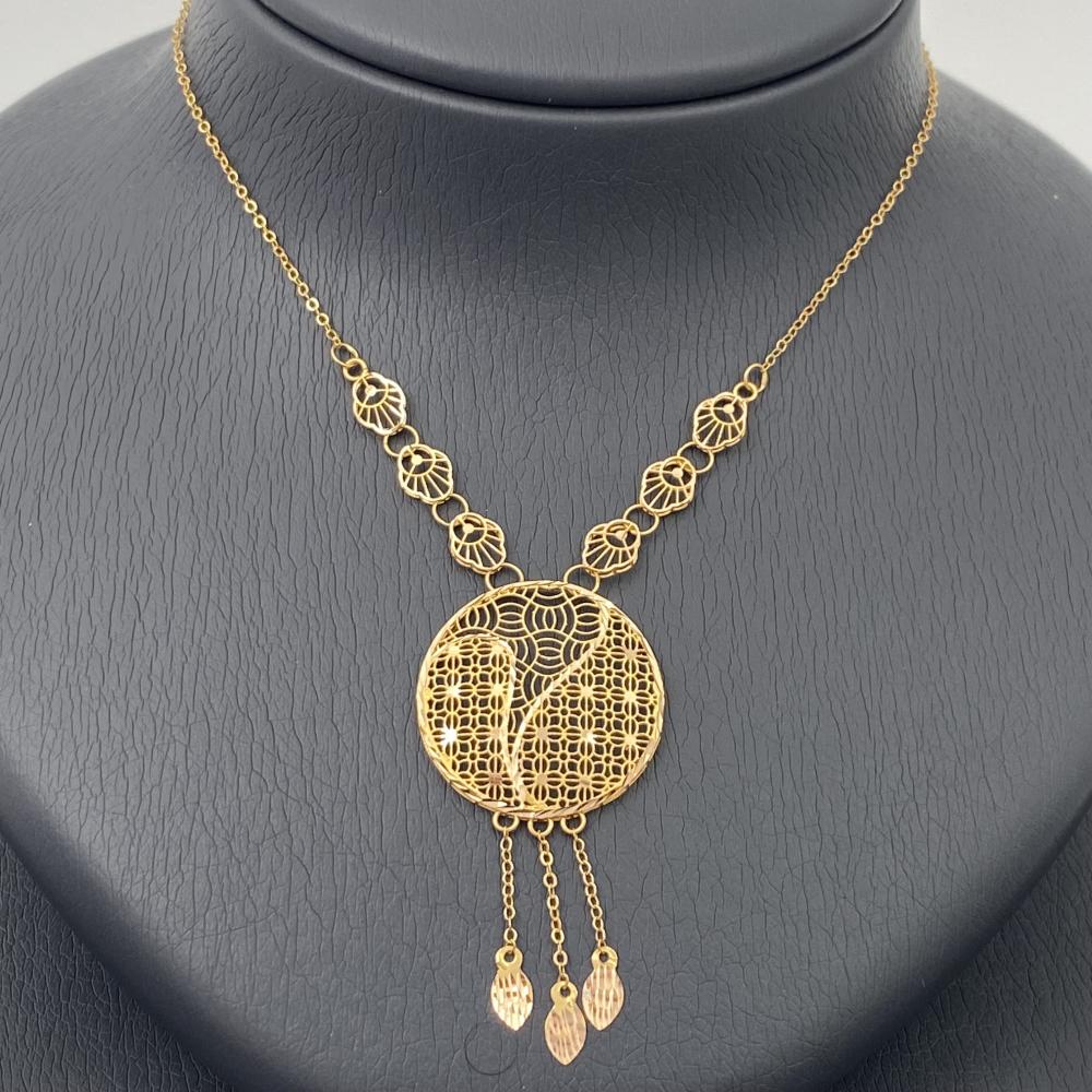 This 21k gold set features attractive and elegant designs that suit your sophisticated beauty. The set weighs 7.84 grams and is ideal for women who prefer luxurious accessories that reflect their refined taste. Get this elegant set today and give yourself a touch of elegance and luxury.