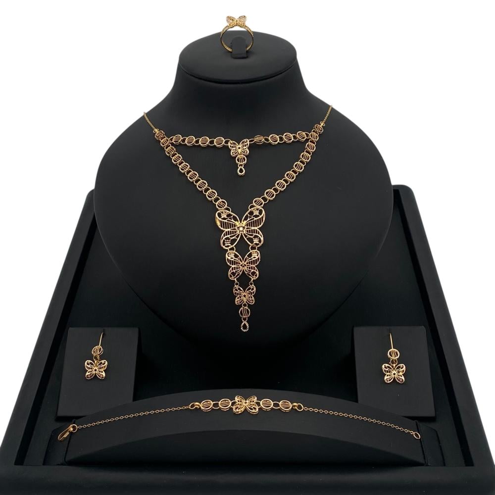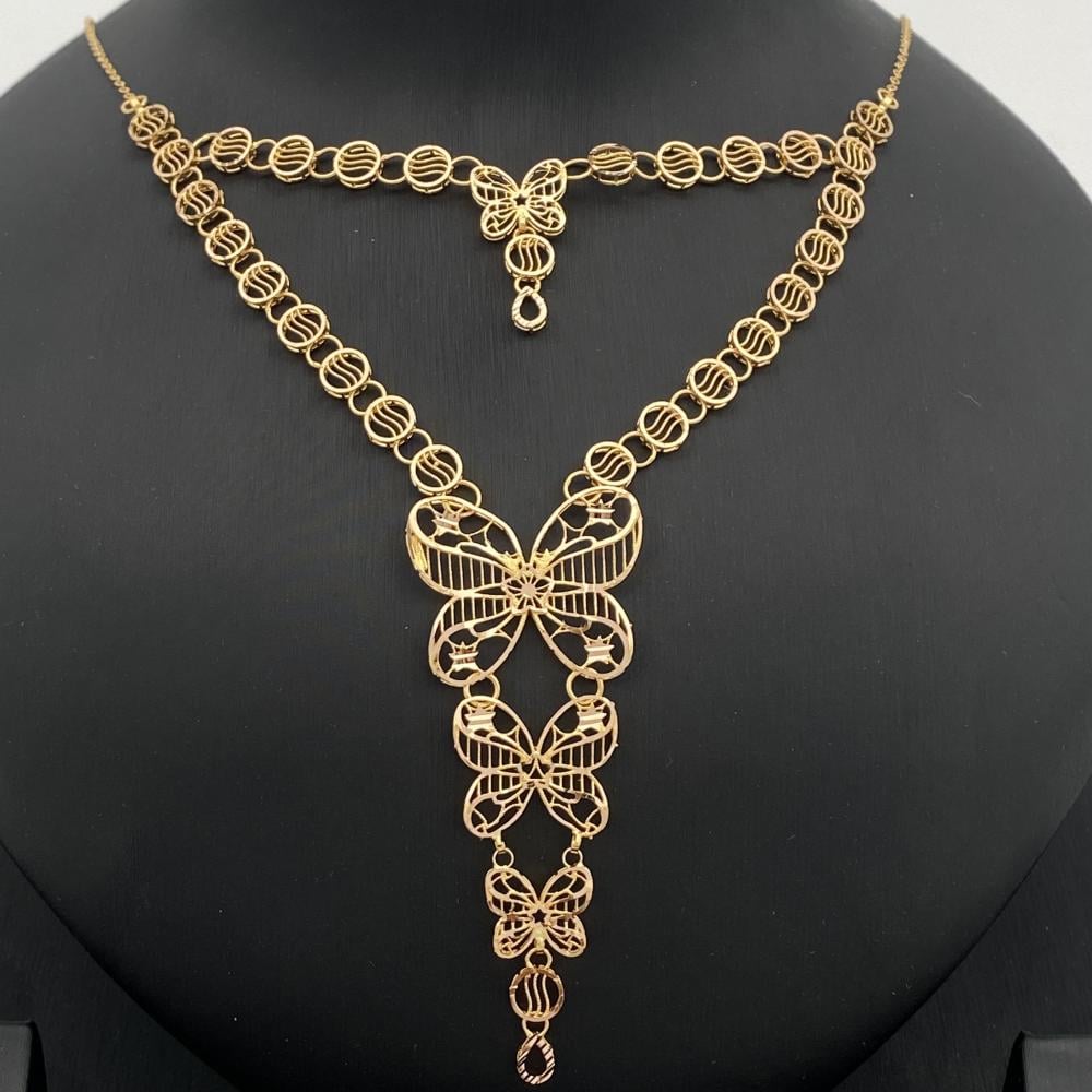 Celebrate your big day with this 21k gold necklace set weighing 15.61 grams, designed to add a touch of elegance and beauty to your special moments. This set is perfect for every bride who wants to stand out in her best attire, and combines delicacy and luxury in its design. A sophisticated gold piece that adds a special sparkle to you and makes you always radiant.