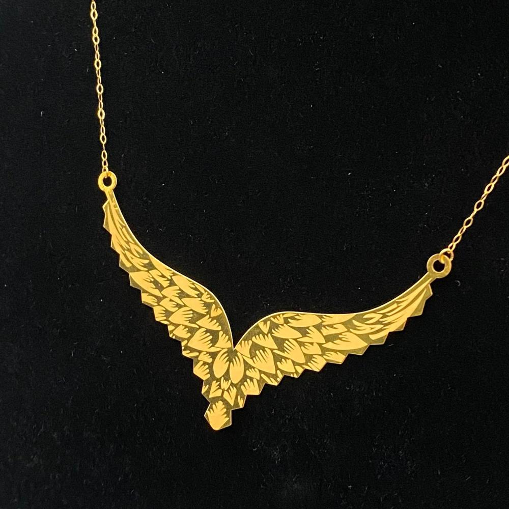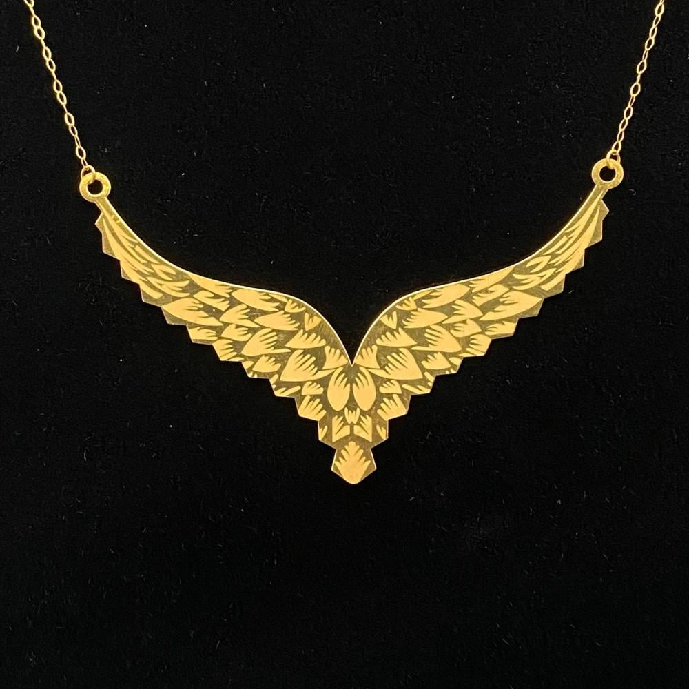 Click here to view the 21 karat gold falcon wing necklace, weight 2.72 grams.