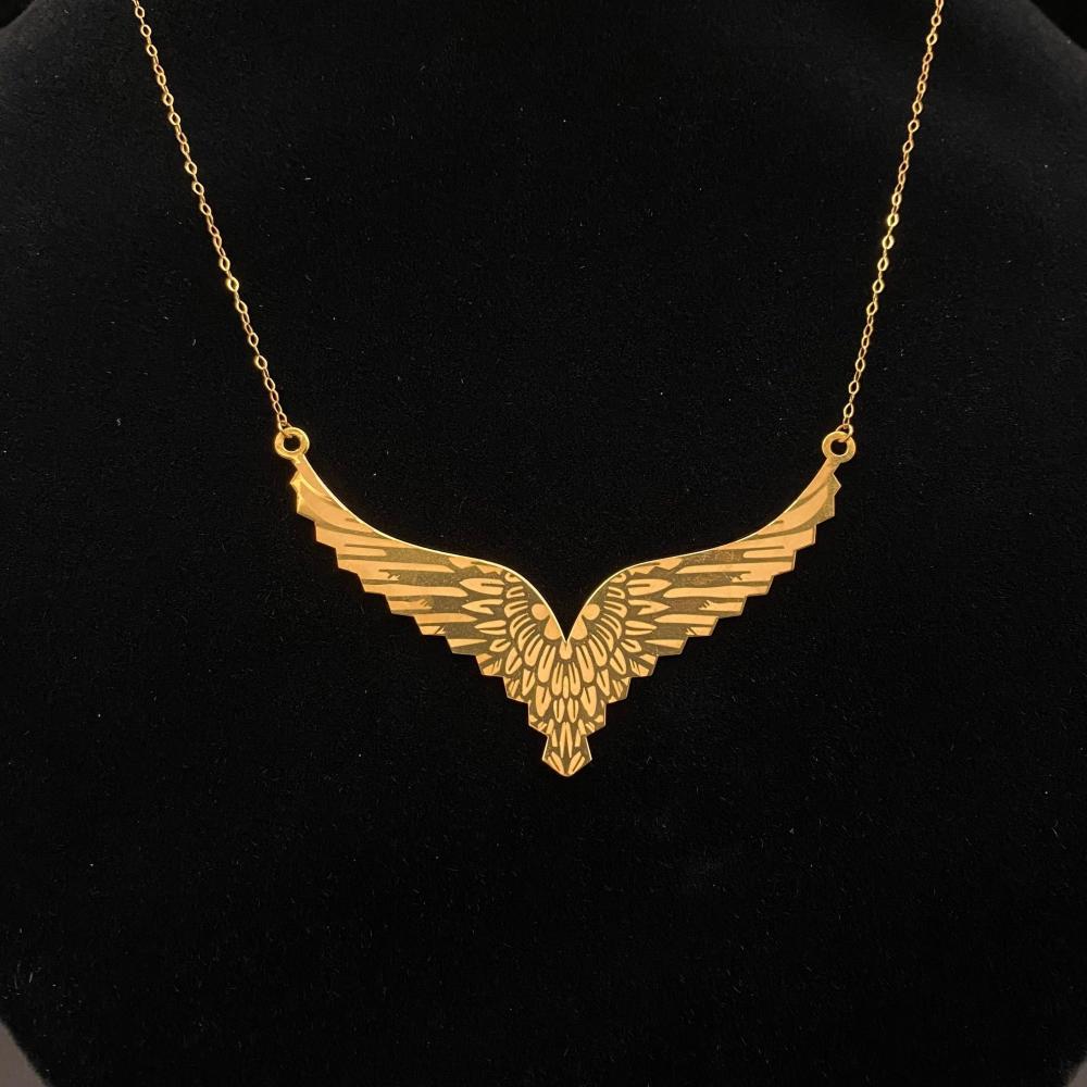 21 karat gold falcon wing necklace, weight 2.33 grams