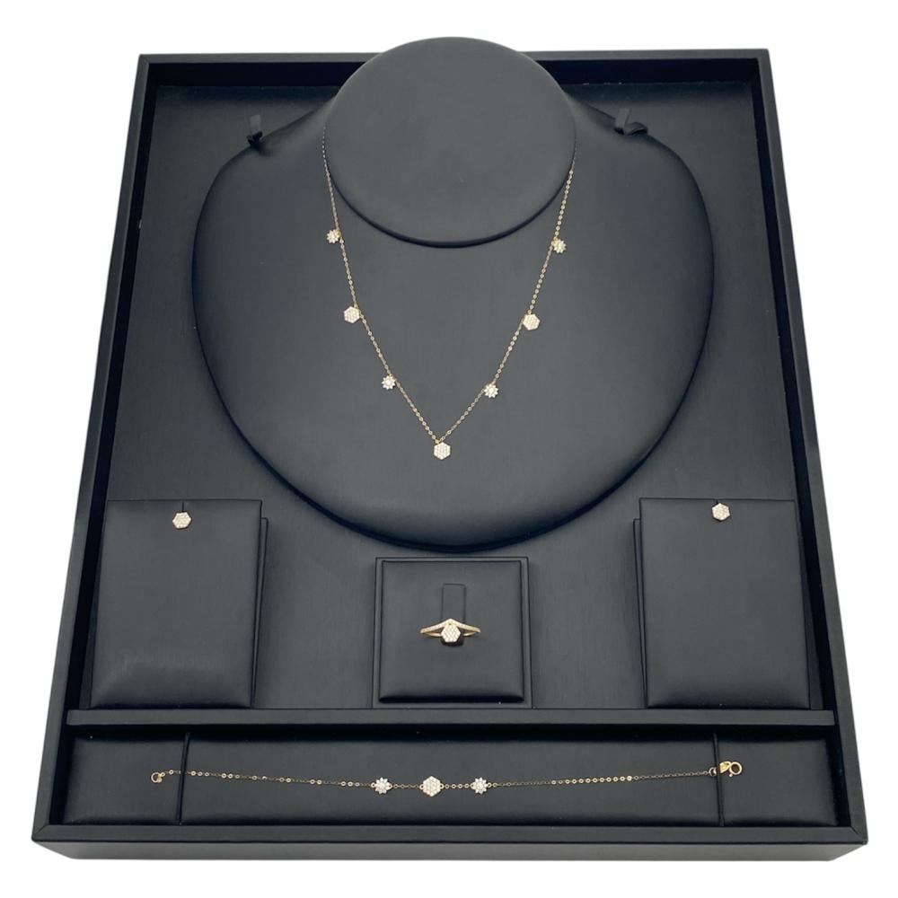 • The sparkling brilliance of the inlay: The inlay with white zircon enhances the value of the gold, and makes the set shine under the lights.