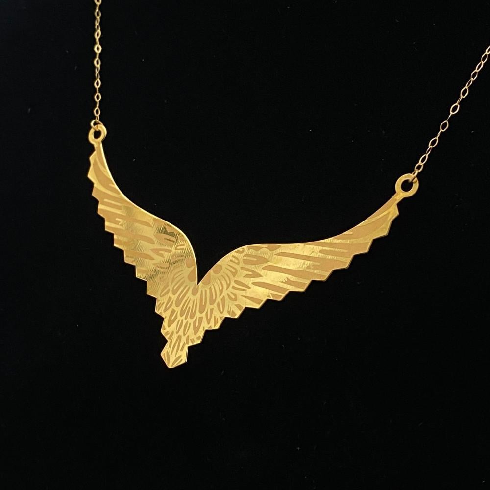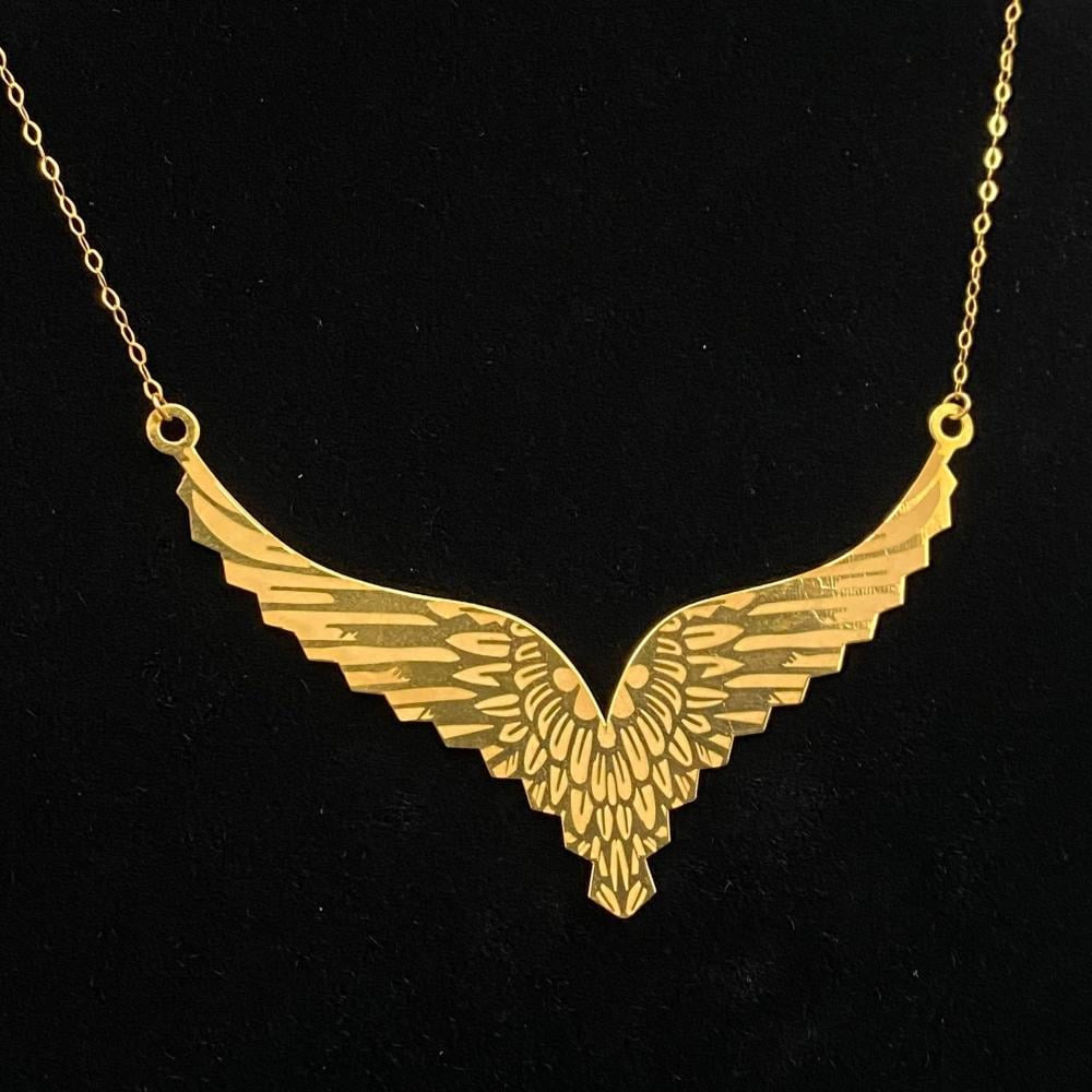 Click here to view the 21 karat gold falcon wing necklace, weight 2.75 grams.