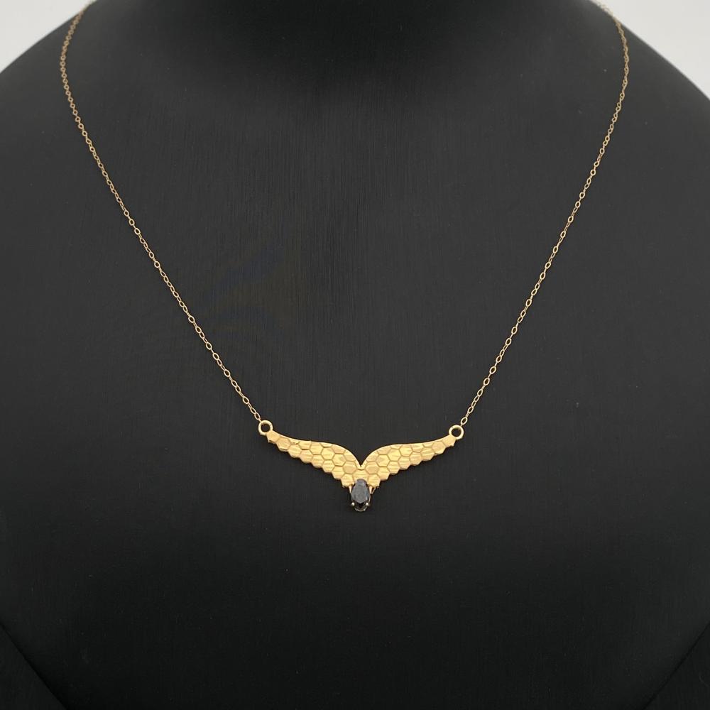 Shine with an exceptional look with the Falcon Wing gold set from Qimat Zawiyat Al Shifa store , where creativity in design meets the luxury of 21-karat gold. This set is distinguished by its fine details that embody the symbol of strength and freedom, with two opposing wings surrounding a luxurious blue stone that adds a touch of elegance and charm. Whether you are looking for a gold piece that reflects your unique personality or a precious gift that expresses good taste, the Falcon Wing gold set is the perfect choice for every woman who loves distinction.
